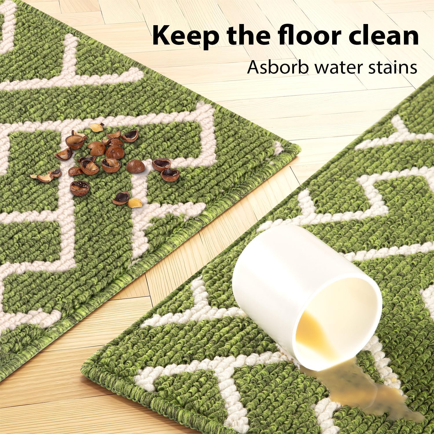 hicorfe Kitchen Rugs and Mats Sets,Non-Slip Absorbent 100% Polypropylene Kitchen Mats for Floor,Comfort Kitchen Runner Mat,Washable for Kitchen,Sink,Laundry(20" x 31.5" Plus 20" x 48",Sage Green)