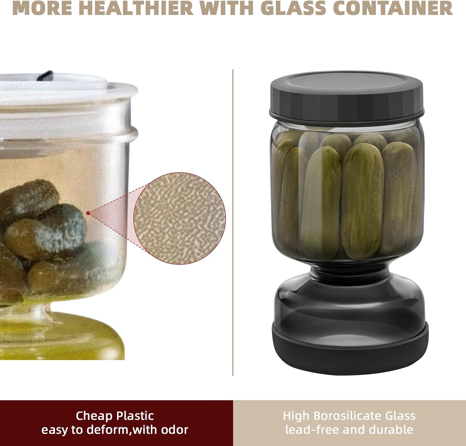 - 【A GOOD GIFT】This is a great gift for any pickle lover in your life. No more hands digging out pickles from the jar, no more worrying about getting a few pickles out of a small jar and messing up all the liquid, no more fretting about the messy pickle juice on the counter. The Luvan glass pickle jar makes eating pickles a breeze and is the perfect birthday, Valentine's Day, Mother's Day, Thanksgiving, Christmas or wedding, housewarming gift!
