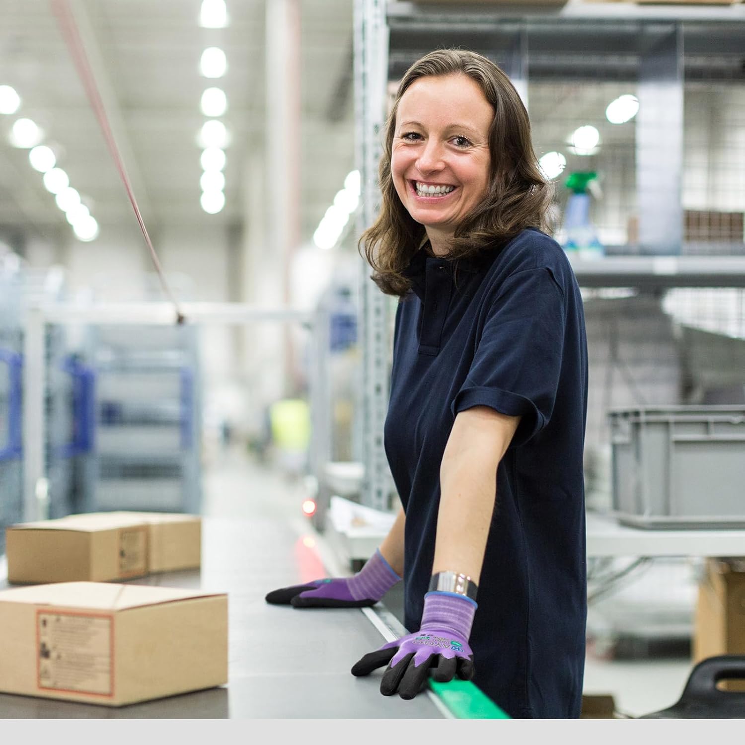 KAYGO Safety Work Gloves MicroFoam Nitrile Coated, 12 Pairs KG18NB,Seamless Knit Nylon Glove for Men and Women, Ideal for Automotive,Warehouse,Construction (S, Purple)