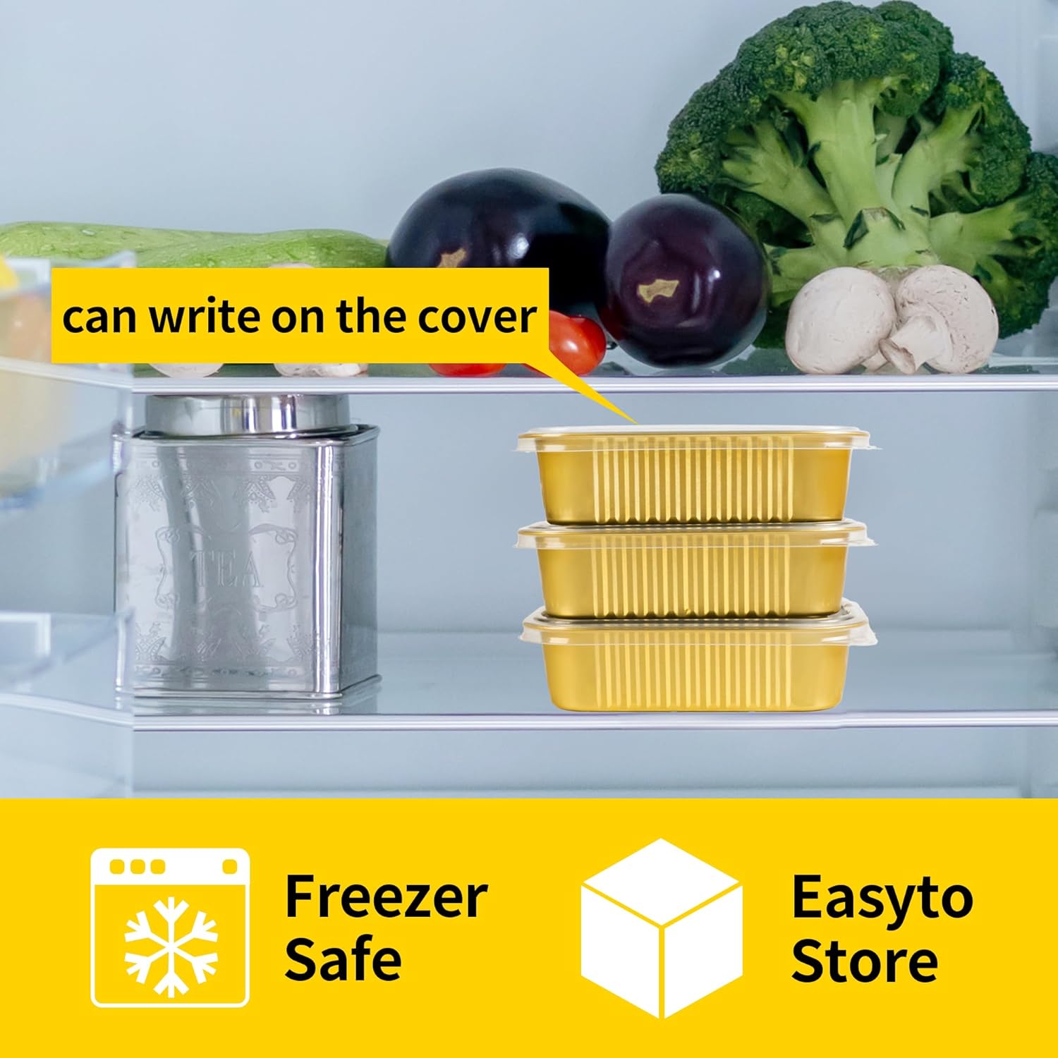 - 【High Quality Safety & Time Saving】JARDLITE gold aluminum foil pan is made of high quality aluminum material, which is 2 times harder than other silver aluminum foil pans, lightweight and sturdy, not easy to deform, high temperature resistant, and can withstand oven temperatures up to 600°F. Food grade plastic cover. Does not contain harmful substances, healthy and safe. Use these takeout containers to pack food and do all the work, saving you time!