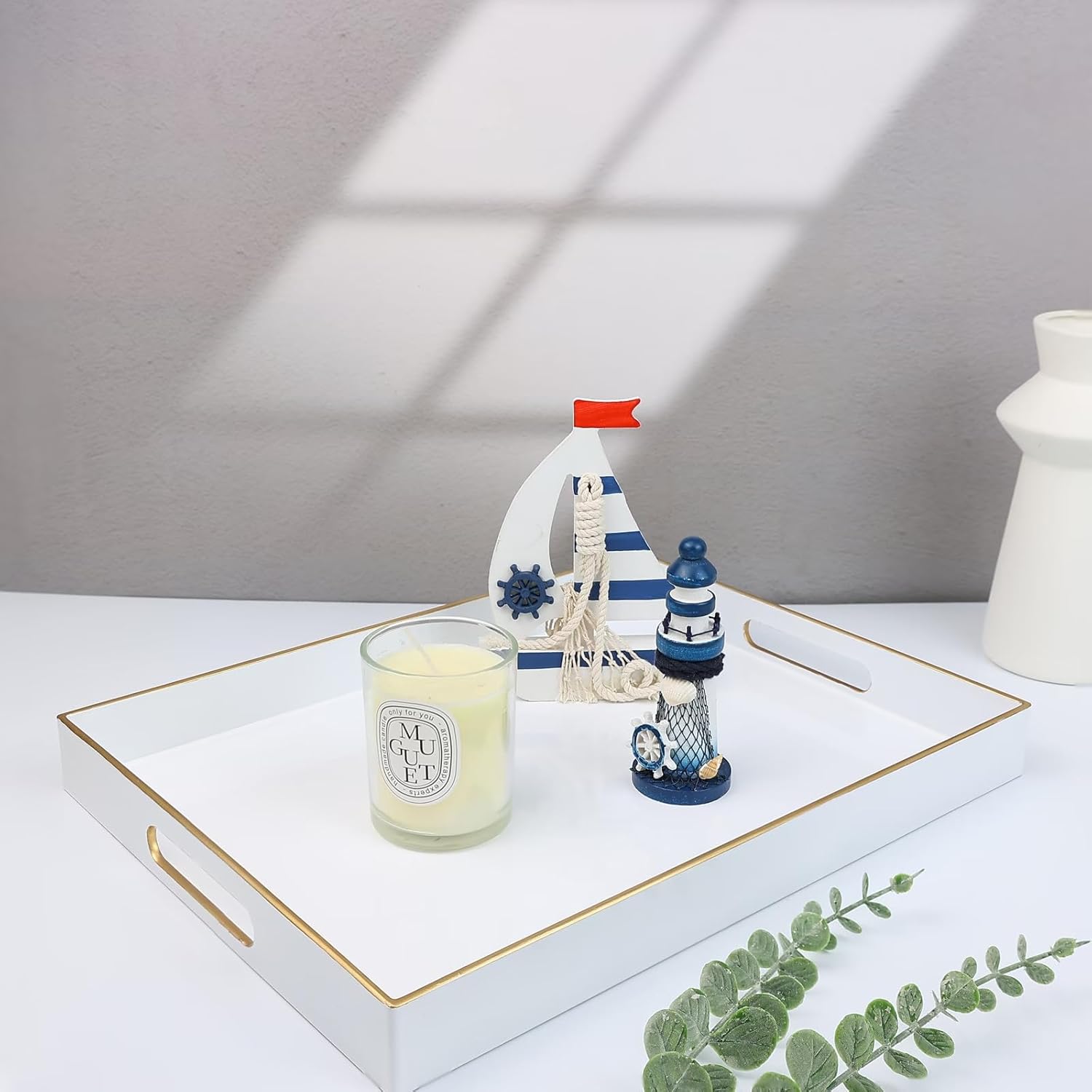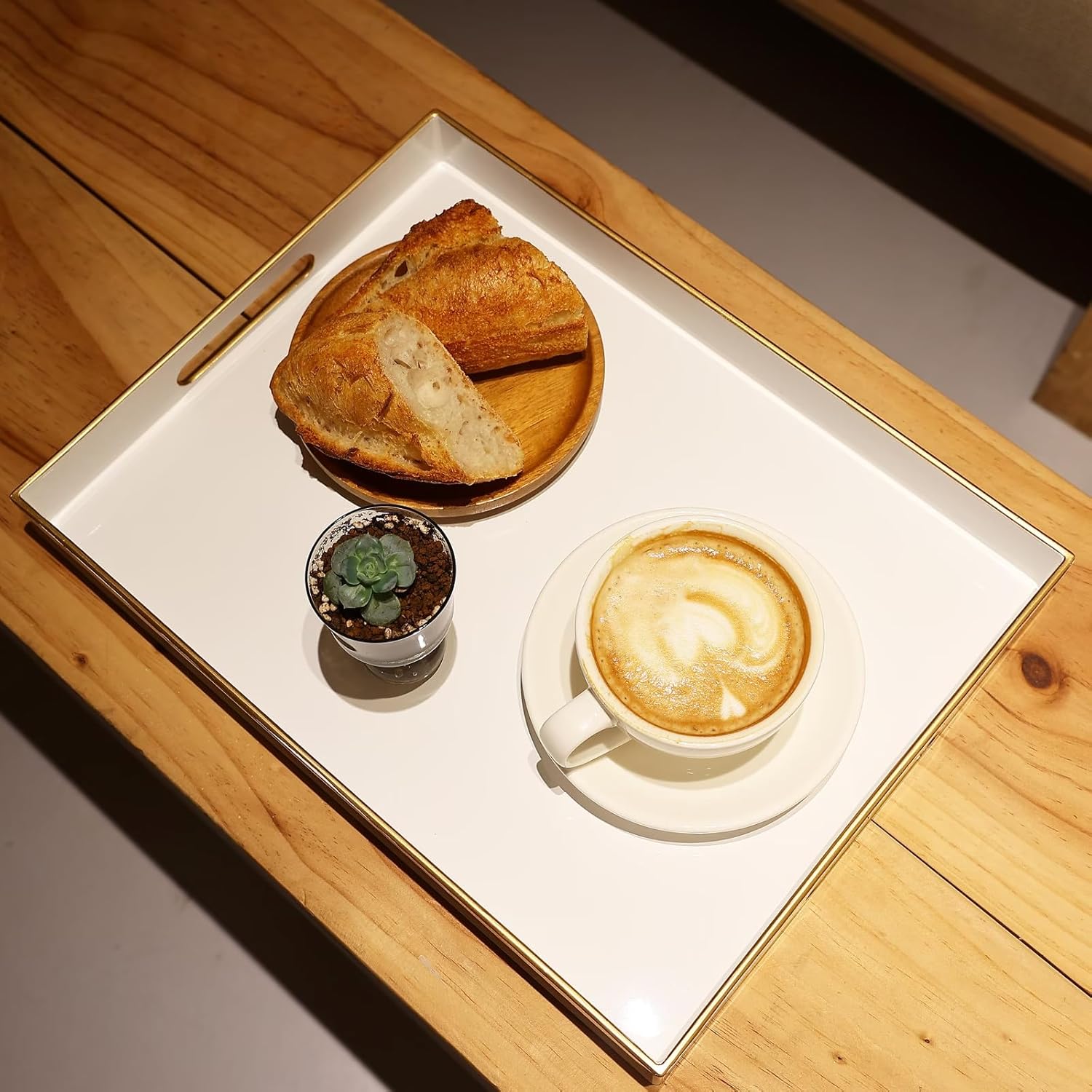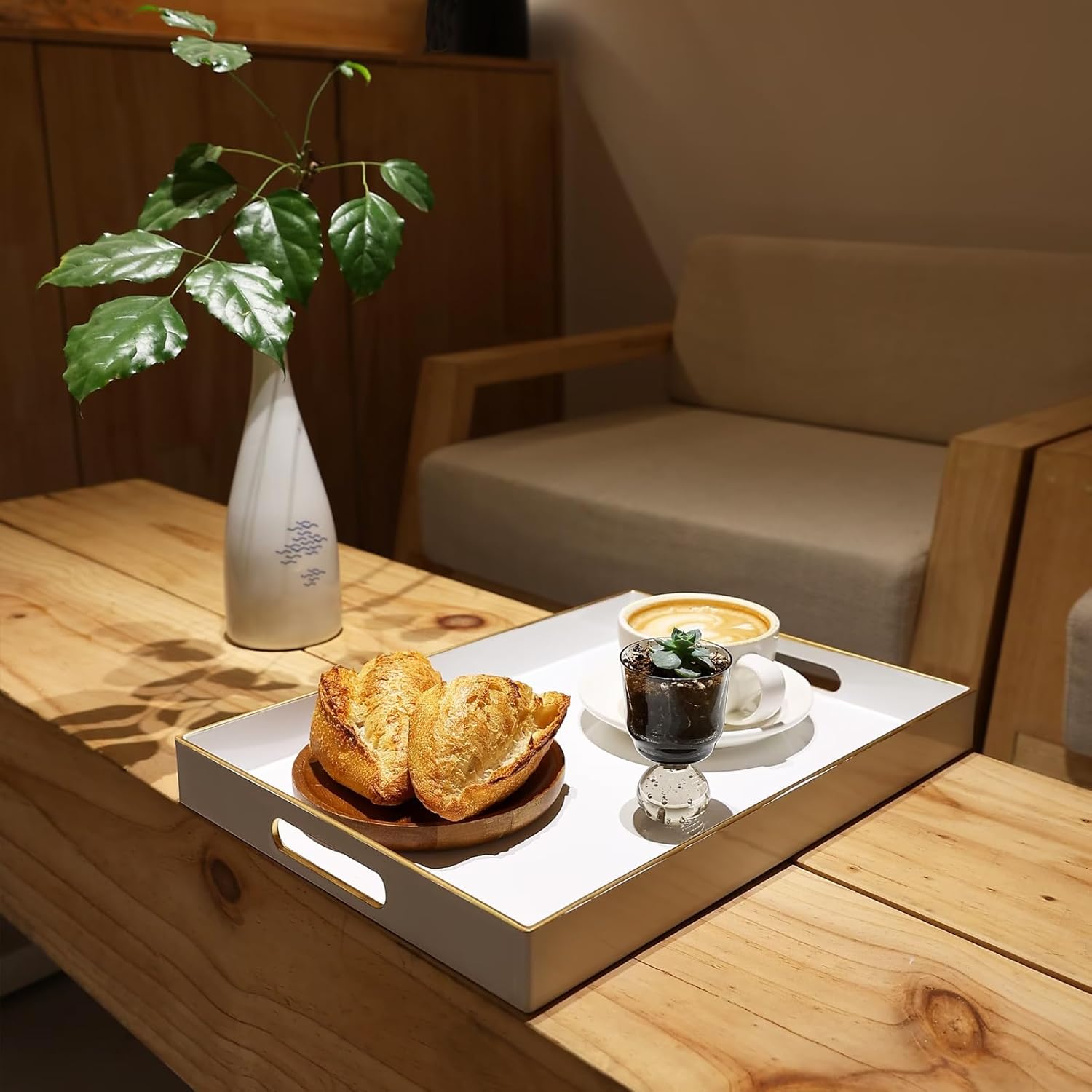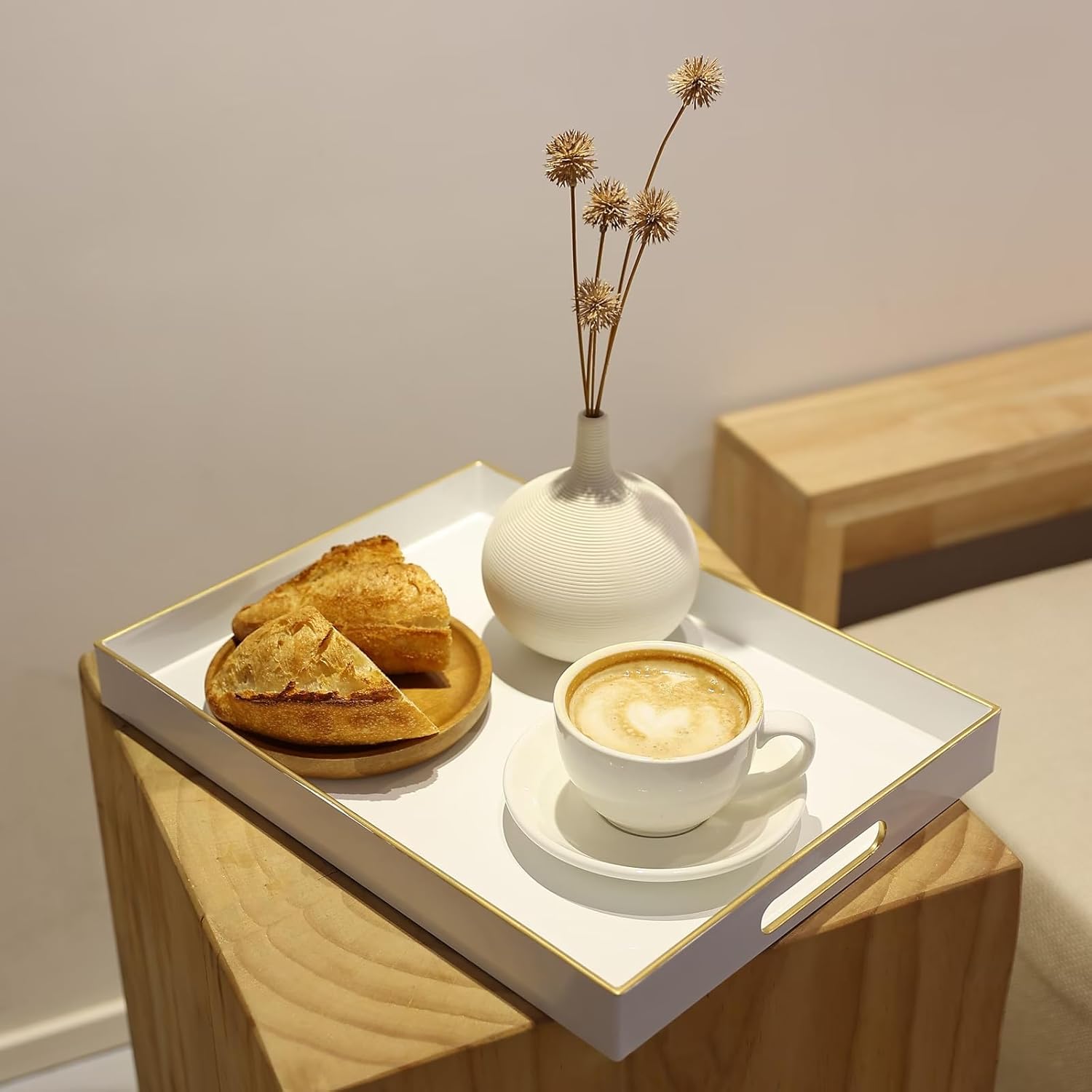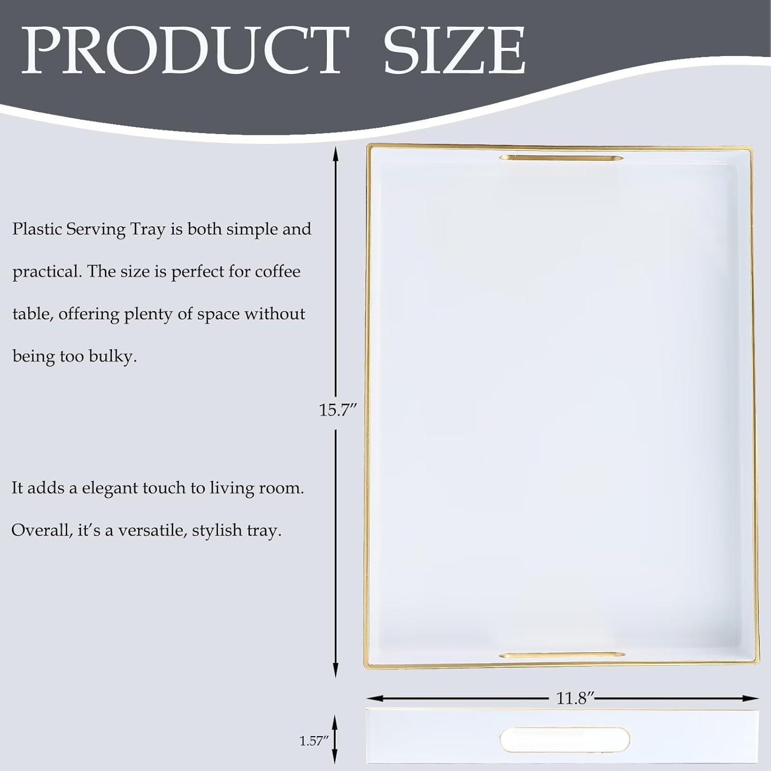 Spsyrine White Plastic Serving Tray for Ottoman, Coffee Table, Rectangle Decorative Tray for Entertaining, Outdoor, Living Room, Home Decor