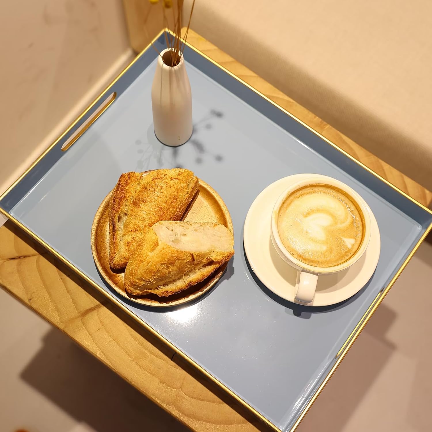 Spsyrine Blue Plastic Serving Tray for Ottoman, Coffee Table, Rectangle Decorative Tray for Entertaining, Outdoor, Living Room, Home Decor