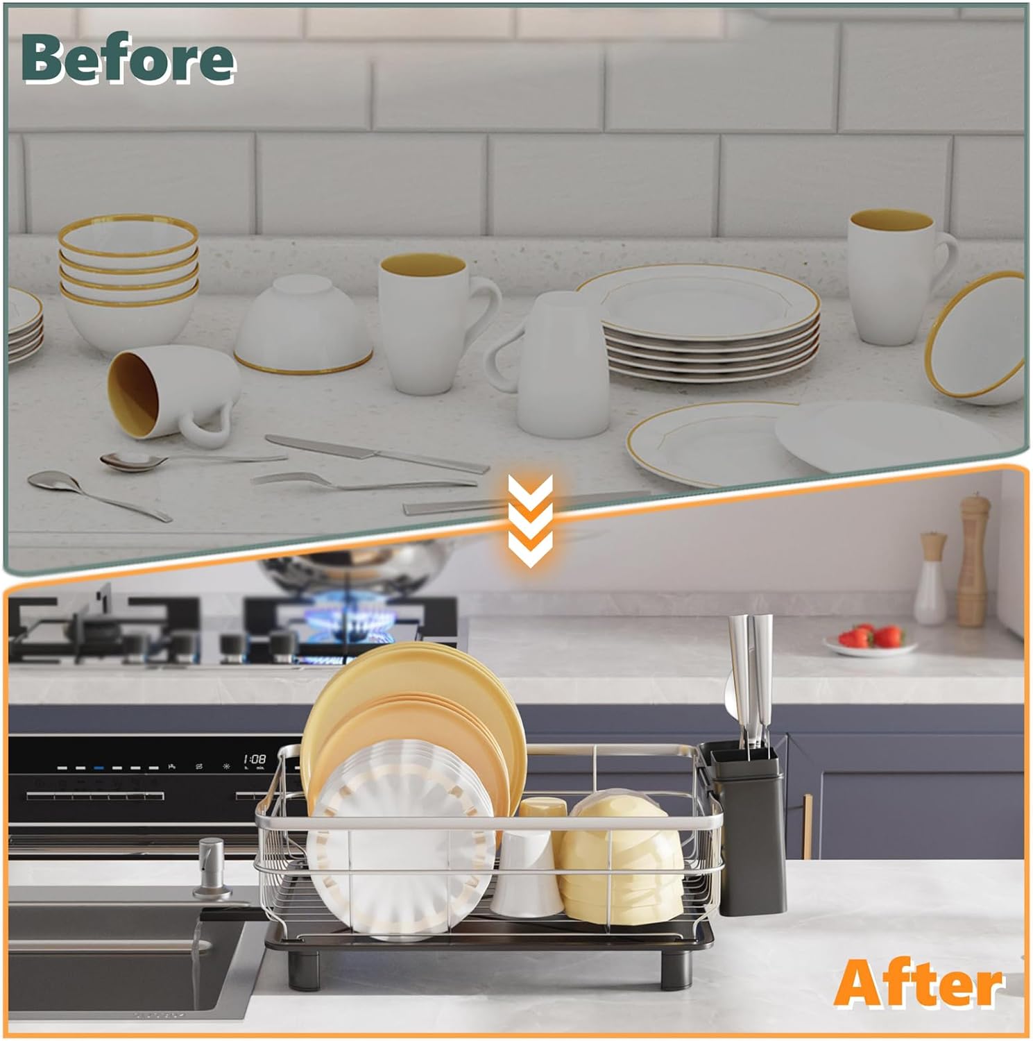 - Save Space: Kitchen dish drying rack takes up minimal counter space, you can do all the dishes in one sweep instead of stopping halfway to dry and make room for more