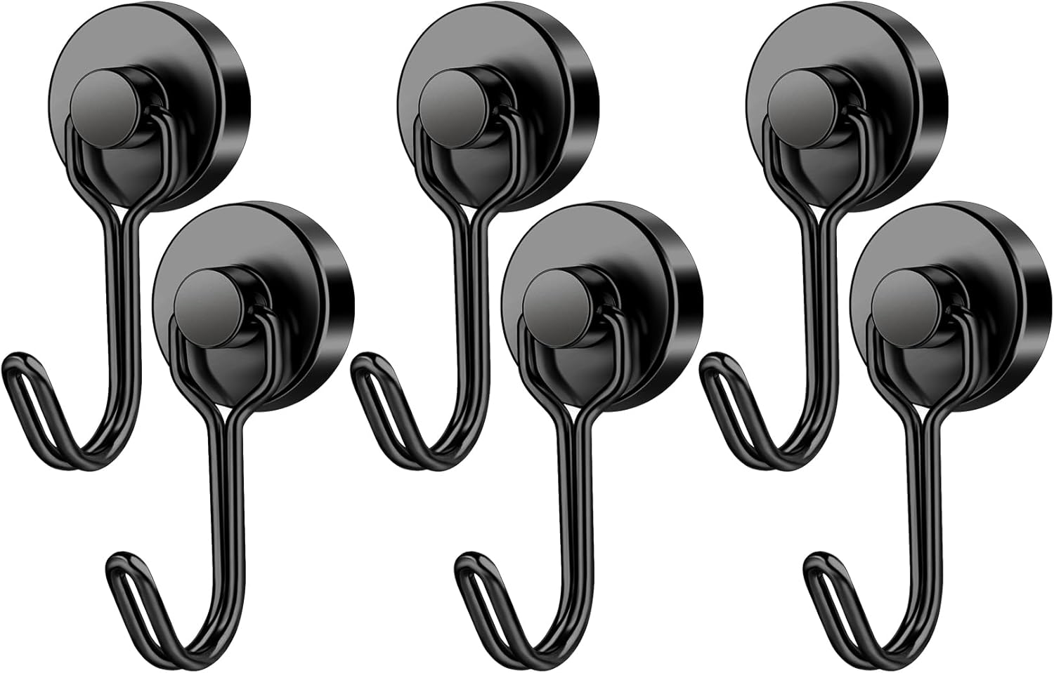 FINDMAG Magnetic Hooks, 40Lbs+ Strong Magnet Hooks for Cruise Cabins, Powerful Neodymium Magnets with Hooks for Hanging, Swivel Swing Black Magnetic Hooks for Fridge, Whiteboard, Kitchen, Toolbox