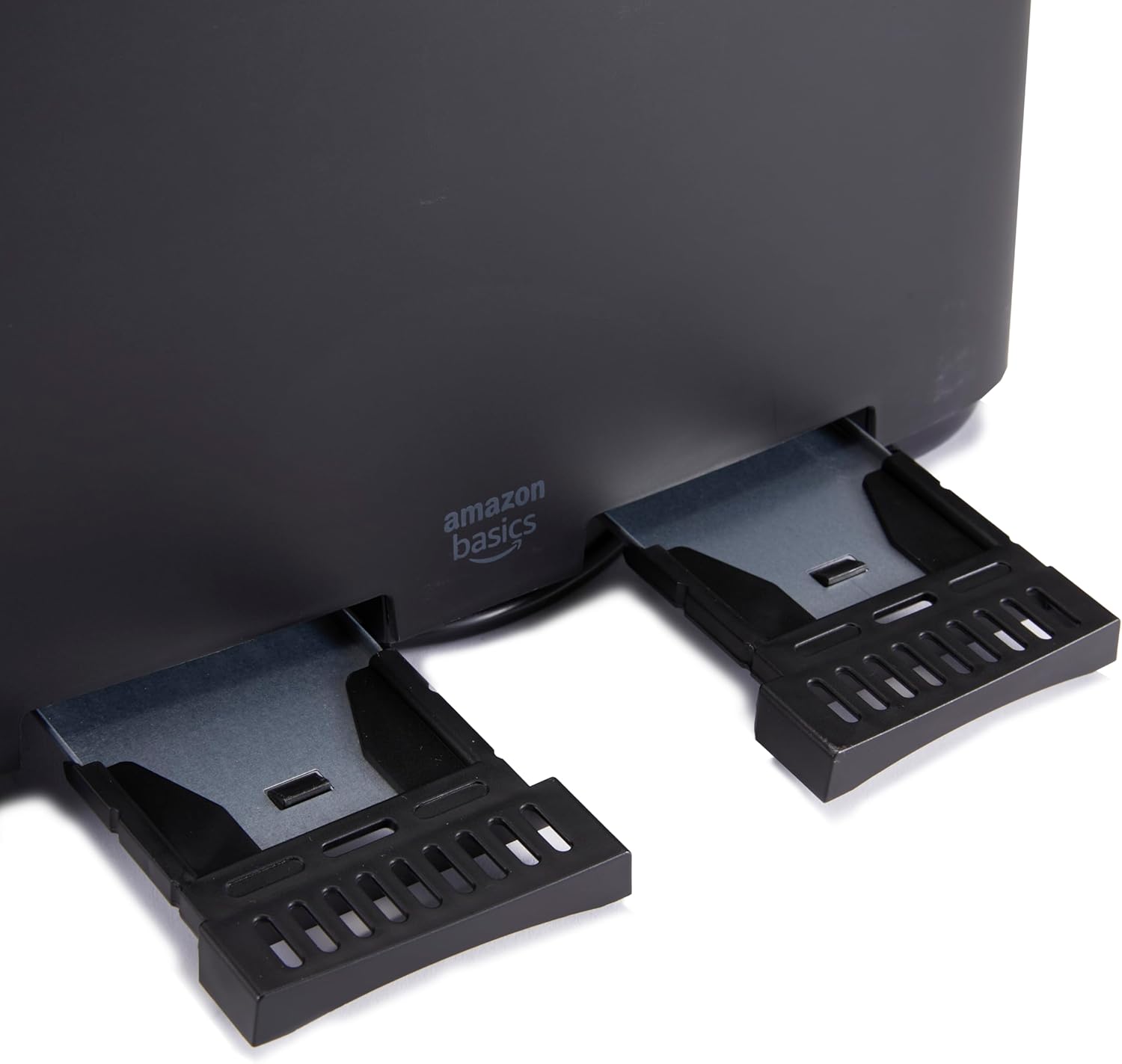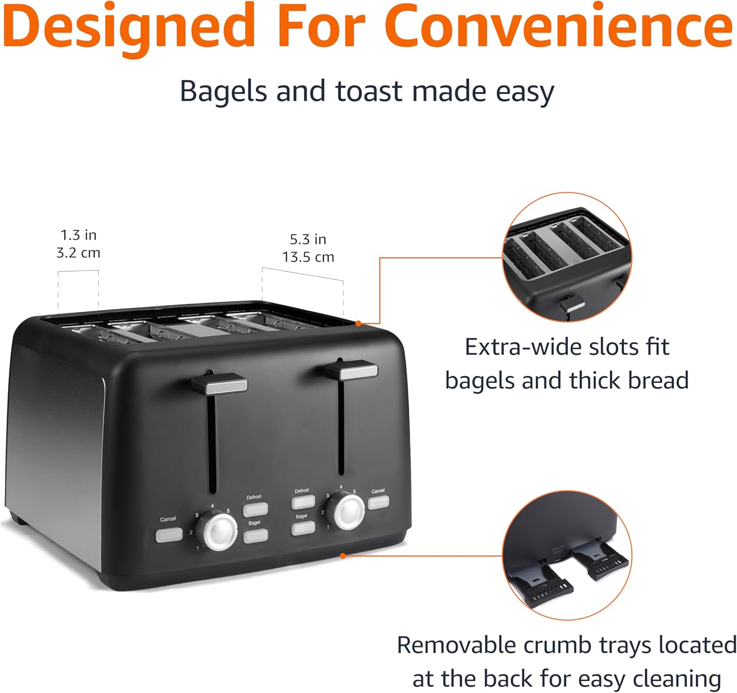 Amazon Basics 4 Slice Toaster, With 7 Browning Settings, Extra Wide Slots For Bagels and Special Breads, Removable Easy-to-Clean Crumb Trays, Cancel/Defrost/Bagel Buttons, 1500W, Black & Silver