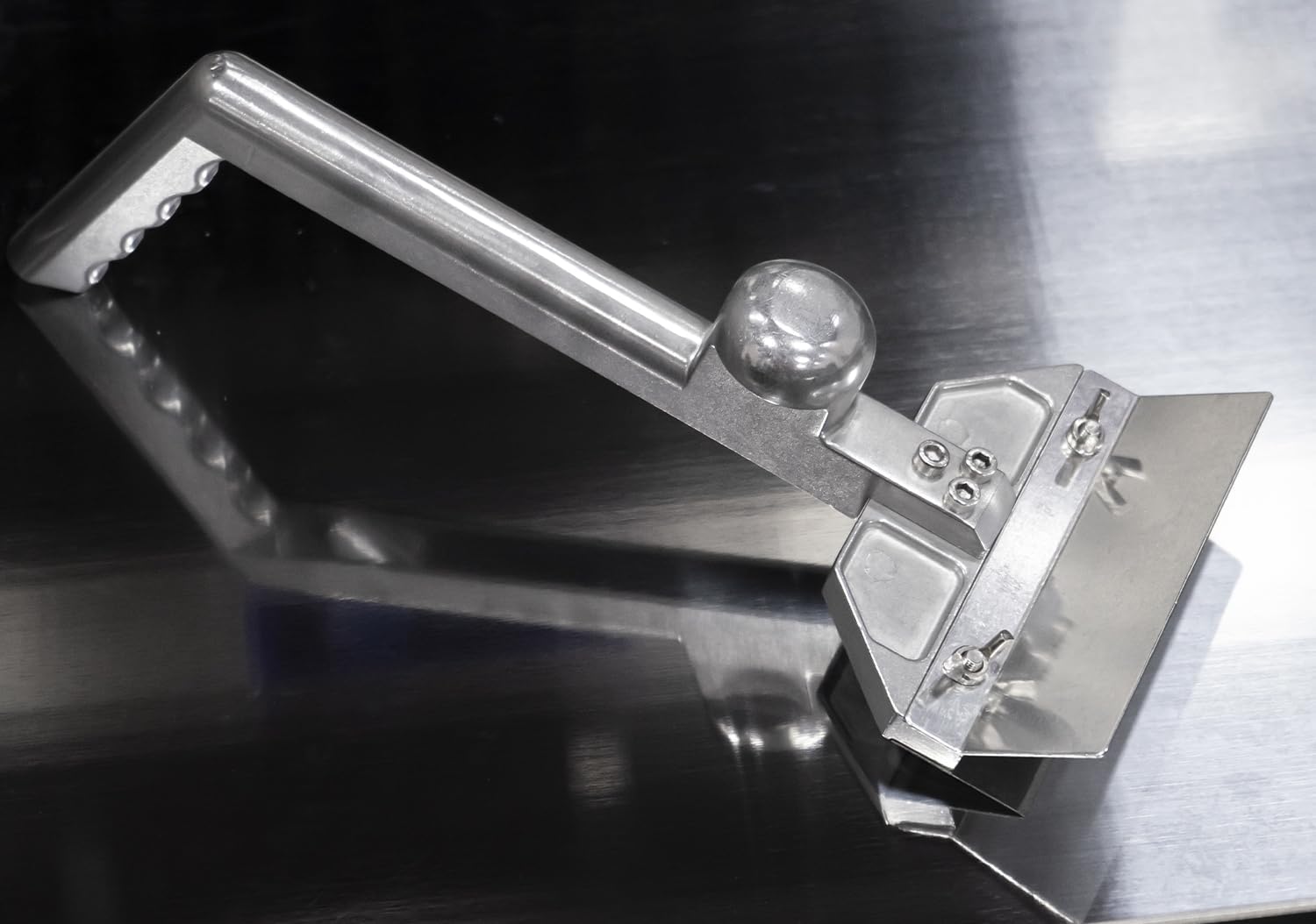 - Egronomic long handle design - The handle of the grill top scraper provides more leverage with an ergonomic hand hold, and a knob grip for the opposite hand for more control and pressure,and prevent hands and fingers from burns.