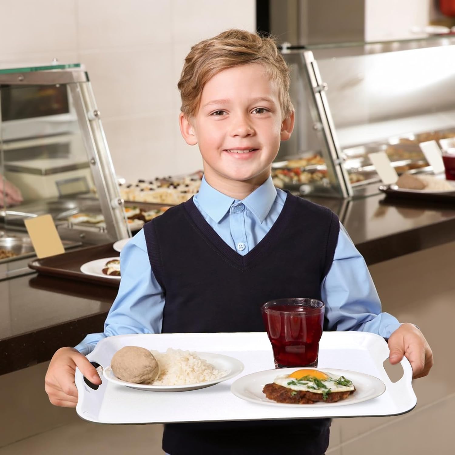 Blue Boat 16.5" x 11.5" Serving Trays Set of 4 White, Dinner Tray, Light Weight Easy to Clean Sturdy Stackable Melamine Serving Tray with Handle, Fruit, Snacks, and Desserts Trays
