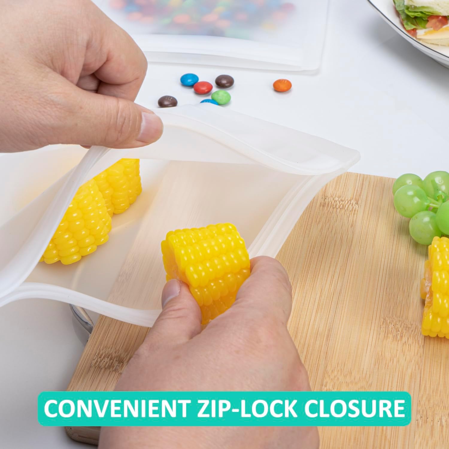 - 【SANDWICH & SNACK SIZES】These reusable silicone food storage bags come with 4 sandwich size bags and 4 snack size bags. The translucent body helps to get a glimpse of what's inside, though not in crystal clear detail. Plus, One silicone bag can reduce up to 300+ single-use plastic bags a year, helping to create a waste-free world and save you a bundle