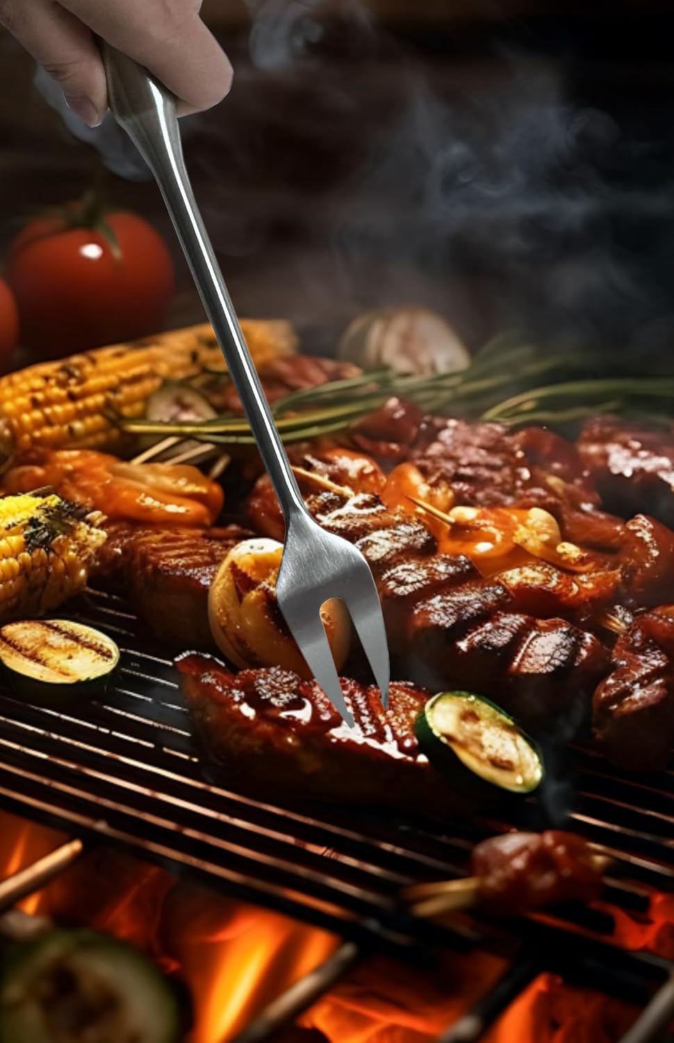 - Complete 4-Piece Set: This versatile metal kitchen utensils set includes a spatula, ladle, serving spoon, and meat fork, covering all your essential cooking and serving needs.