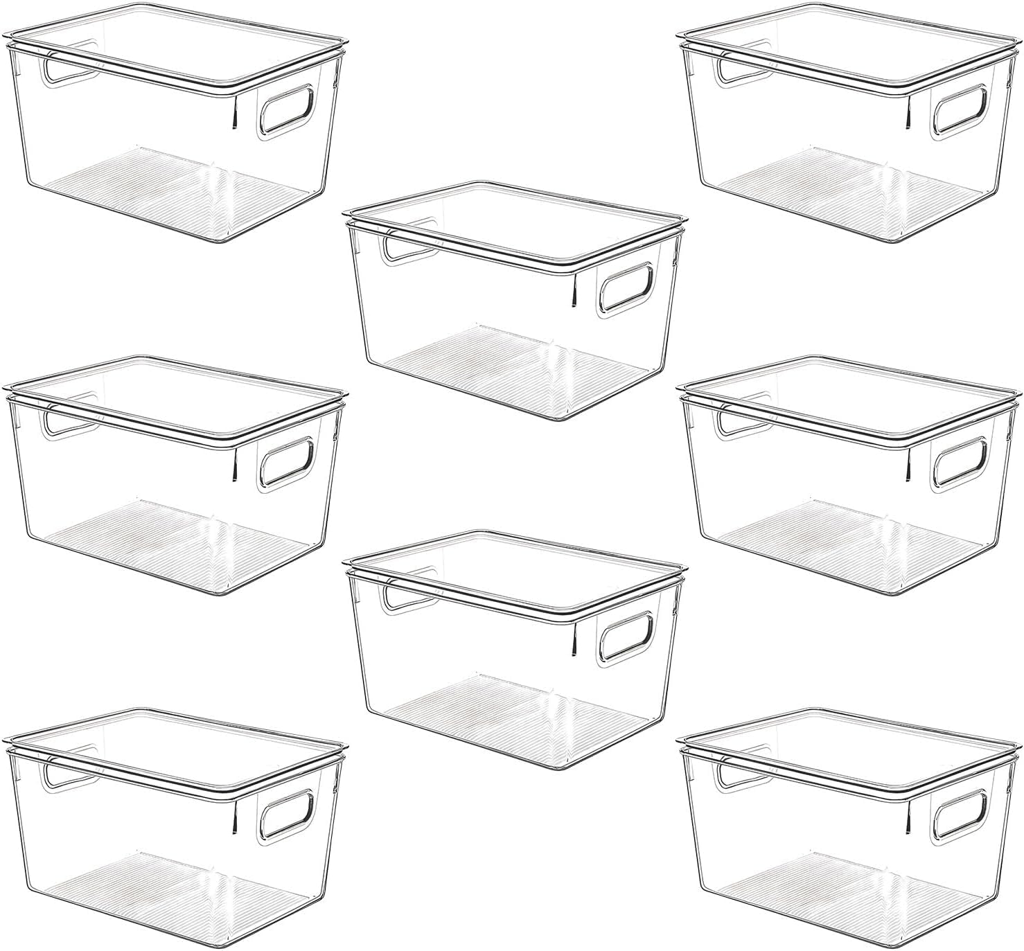Clear Plastic Stackable Storage Bins with Lids, Pantry Organizers and Storage Containers Fridge Organizer Bins Kitchen Cabinet Organizer Bin for Organizing Under Sink Refrigerator Organization