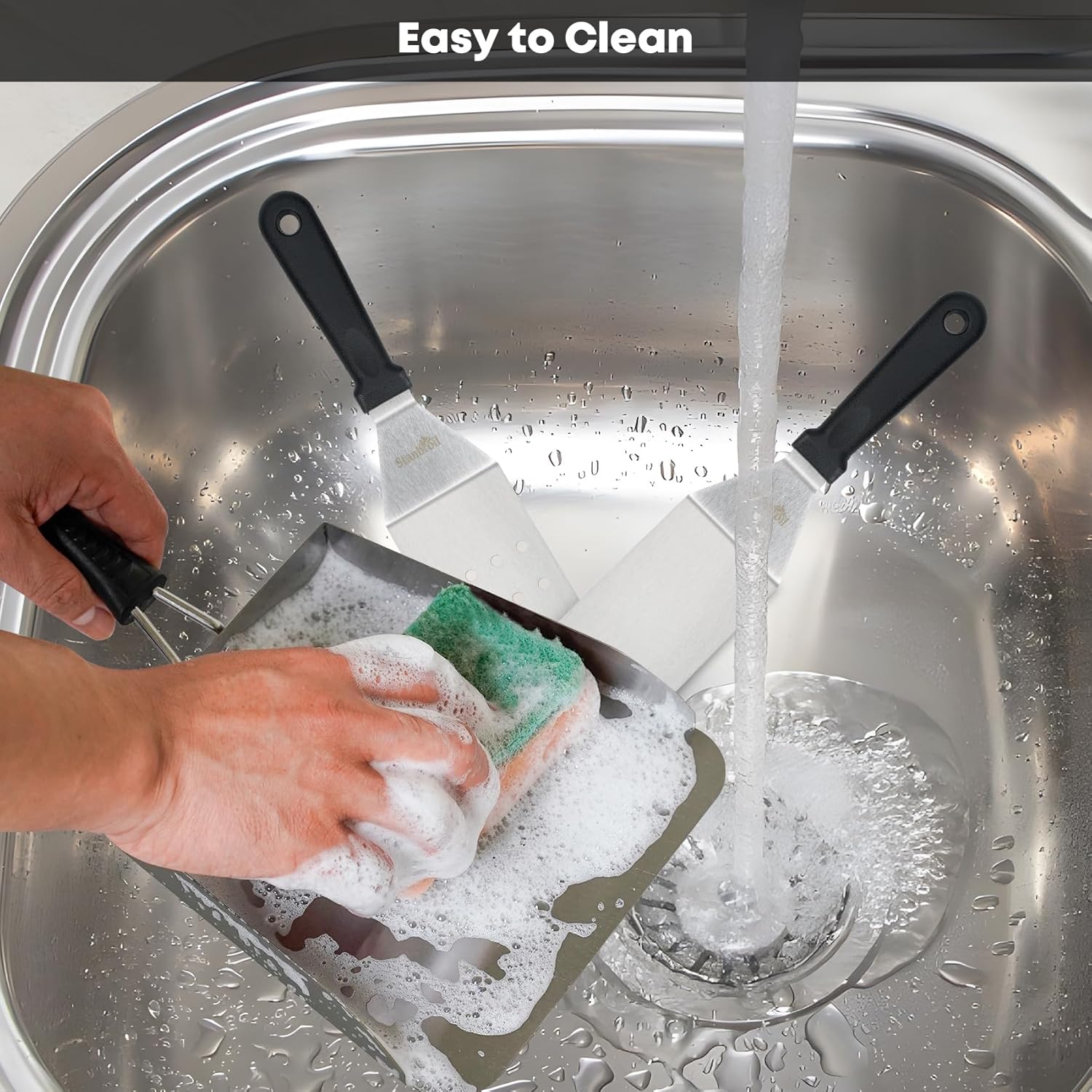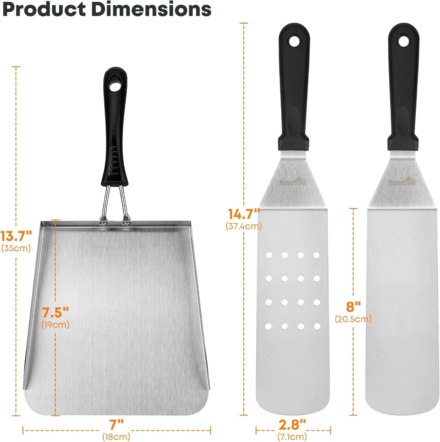 - Flat Top Grill Accessories Set for All Your Needs: This griddle spatula set includes one large griddle scoop and two spatula stainless steel.