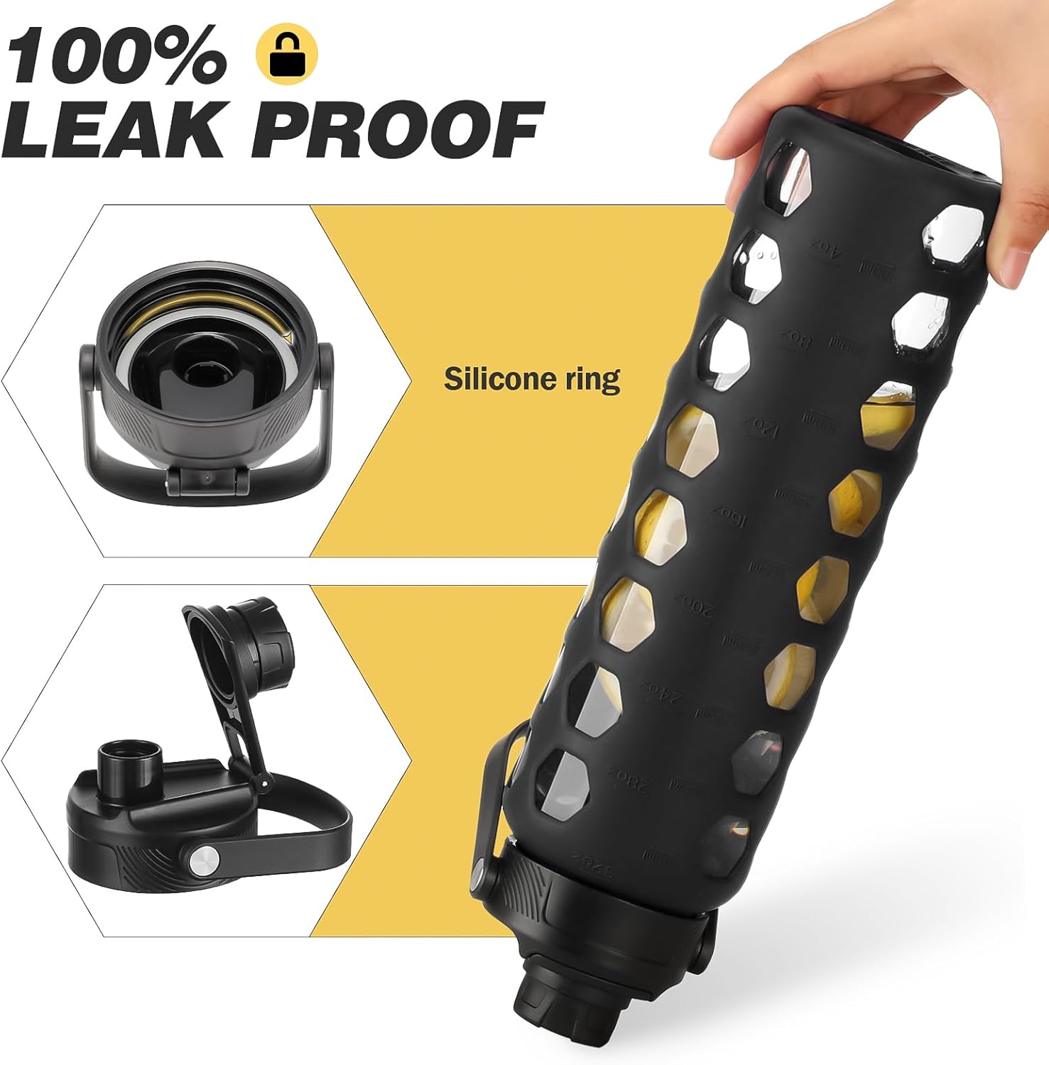 - COLD DRINK:1 liter waterbottle made of premuim borosilicate glass which is sturdy and thermal resistance. It can withstand high and low temperatures without shattering or cracking, which makes the glass waterbottle suitable for both hot and cold drinks.