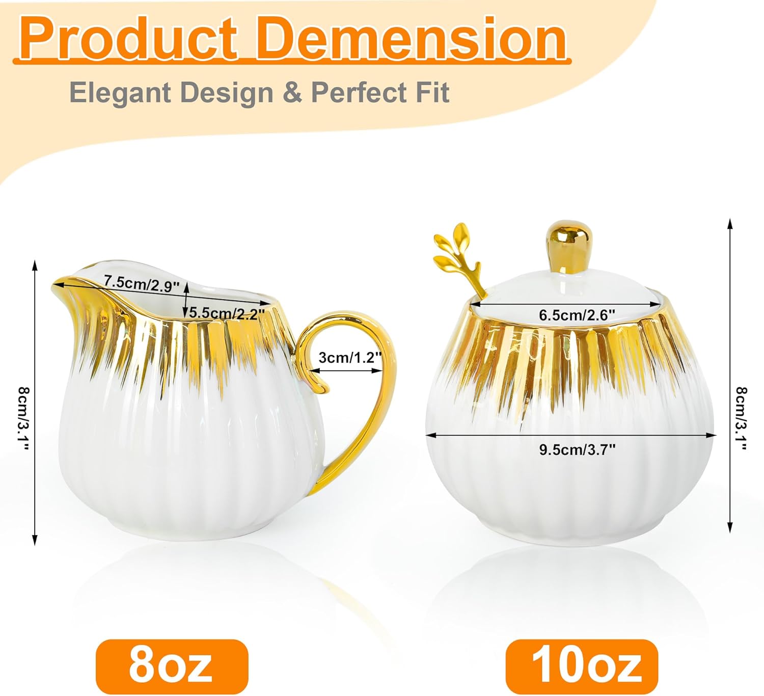 - 【High-Quality Material】Our sugar and creamer set is made of fine ceramic and exudes sophistication. With its smooth glaze and delicate gold trim, it adds a touch of luxury to any table setting.
