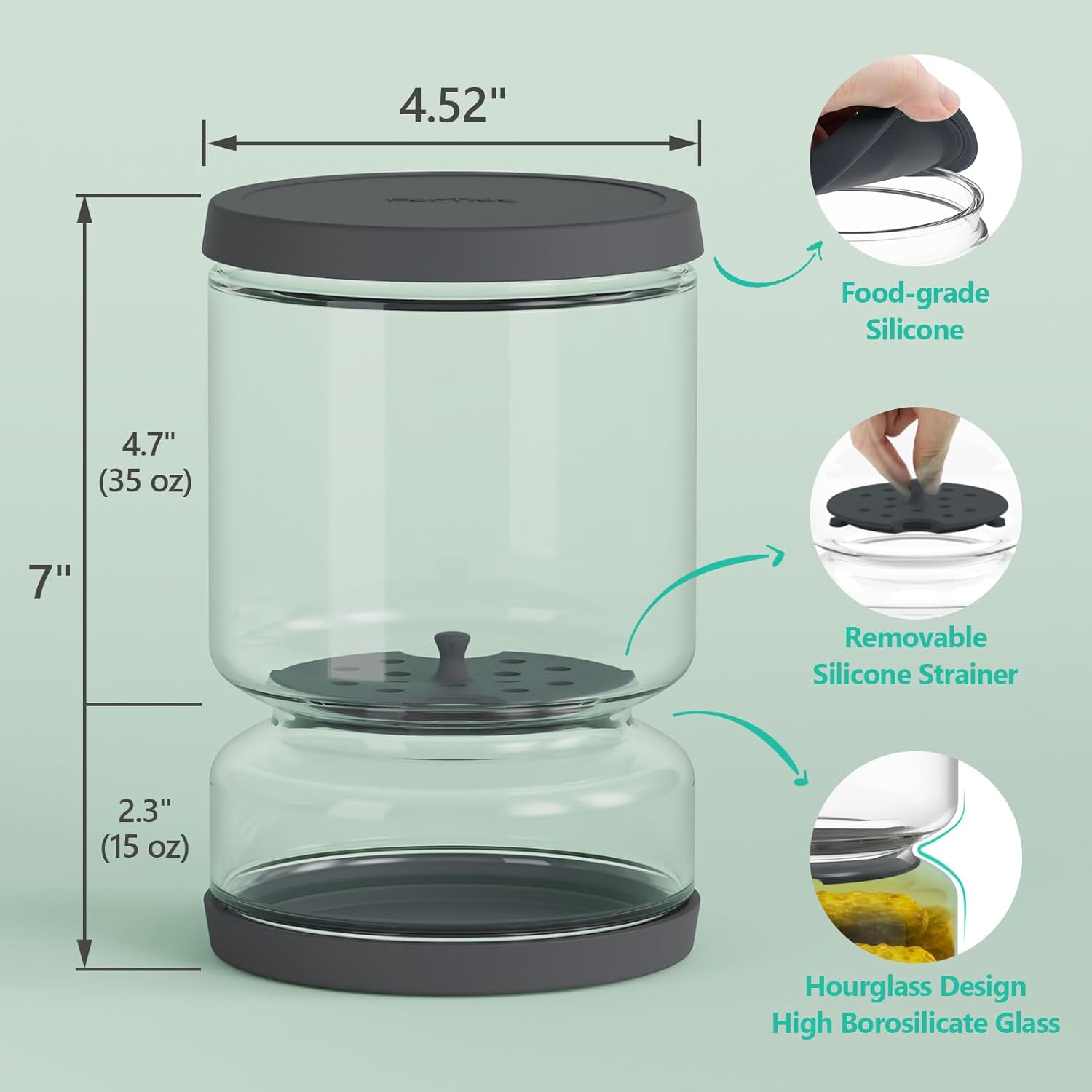 - Versatile Food Storage: This pickle keeper can also be used to store and strain other foods, such as olives, jalapeños, and other small snacks; this makes it a versatile gadget to your kitchen