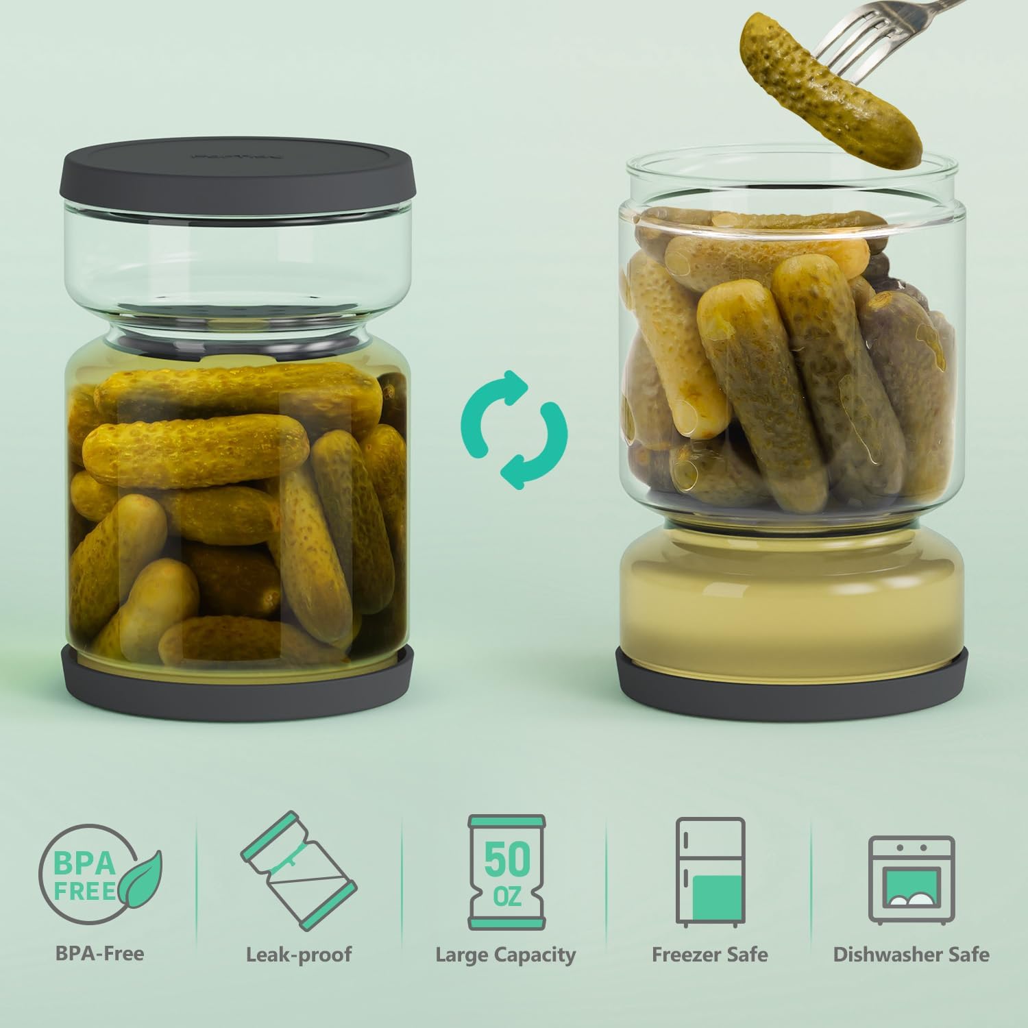 - Leak-Proof Design: The airtight lids of this pickle holder grip the container tightly to prevent leakage, and keep pickles fresh and flavorful for longer periods of time
