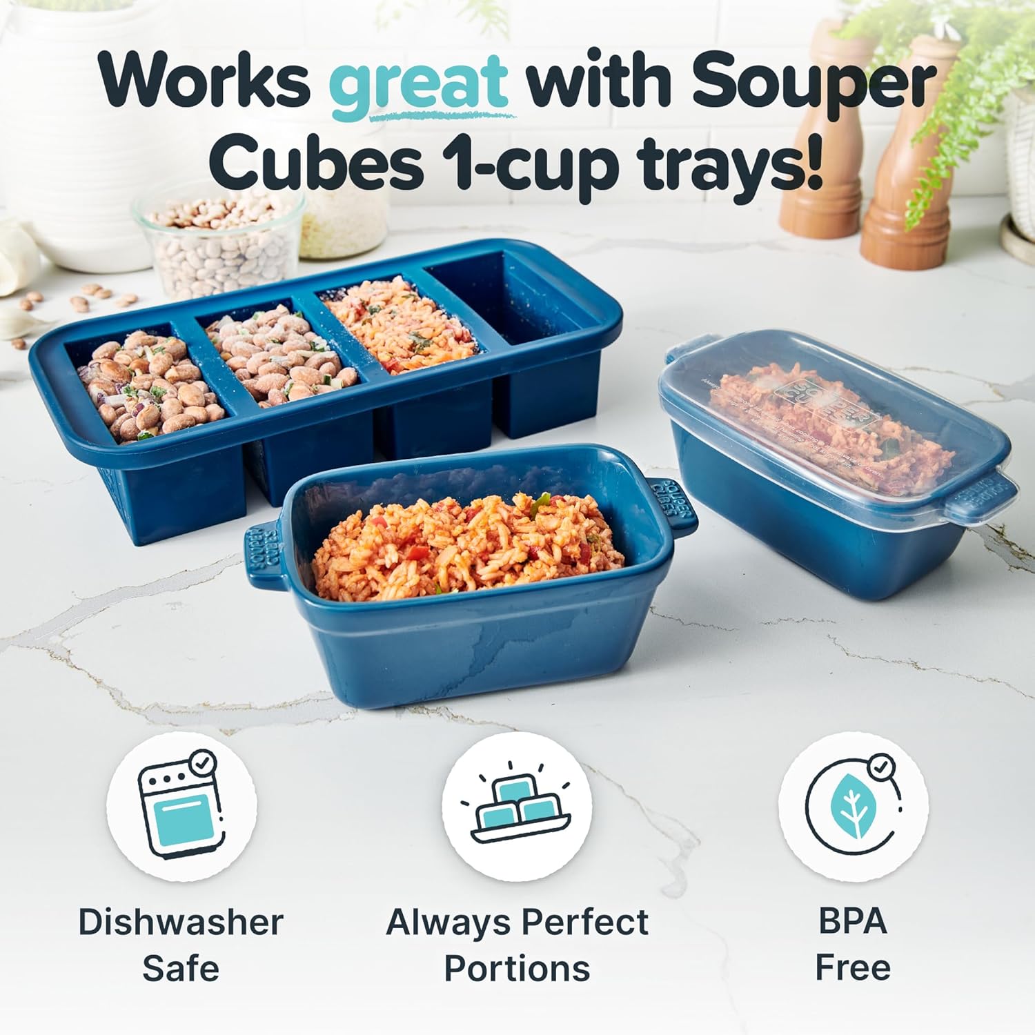 - GREAT FOR REHEATING: Souper Cubes blueberry 5” X 3” Stoneware is designed to make mealtime easy. Simply pop out your frozen portions from your Souper Cubes freezer tray and transfer them into our small ceramic baking dishes. Perfectly sized to fit cubes from our 1-cup tray, these stoneware dishes are ideal for reheating in the oven or microwave. Please note: our stoneware is not intended for freezing—use it to reheat and enjoy!