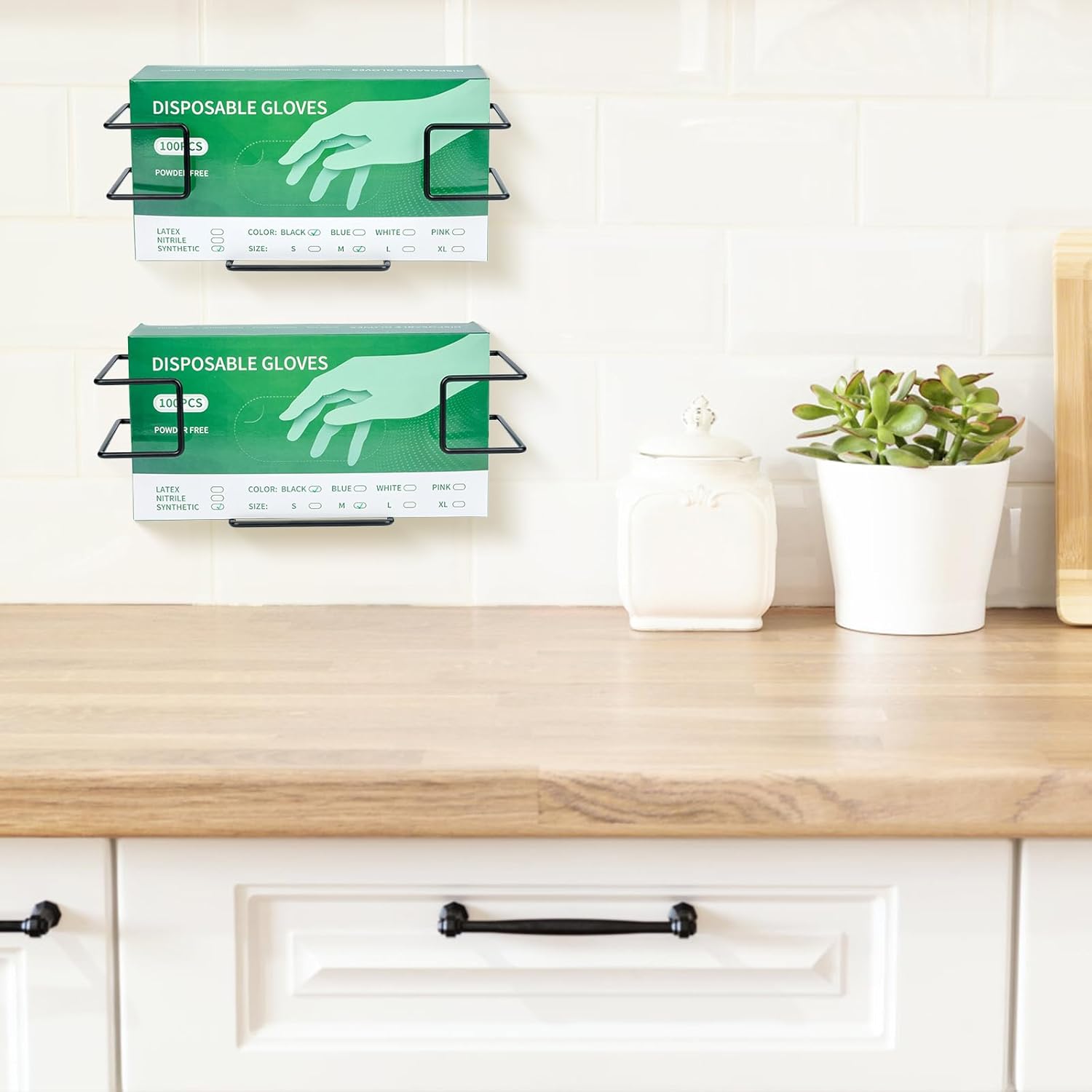 - Space Saving:Occupying no desktop space, the compact glove dispenser allows you to make the most of limited wall, countertop, and drawer areas.