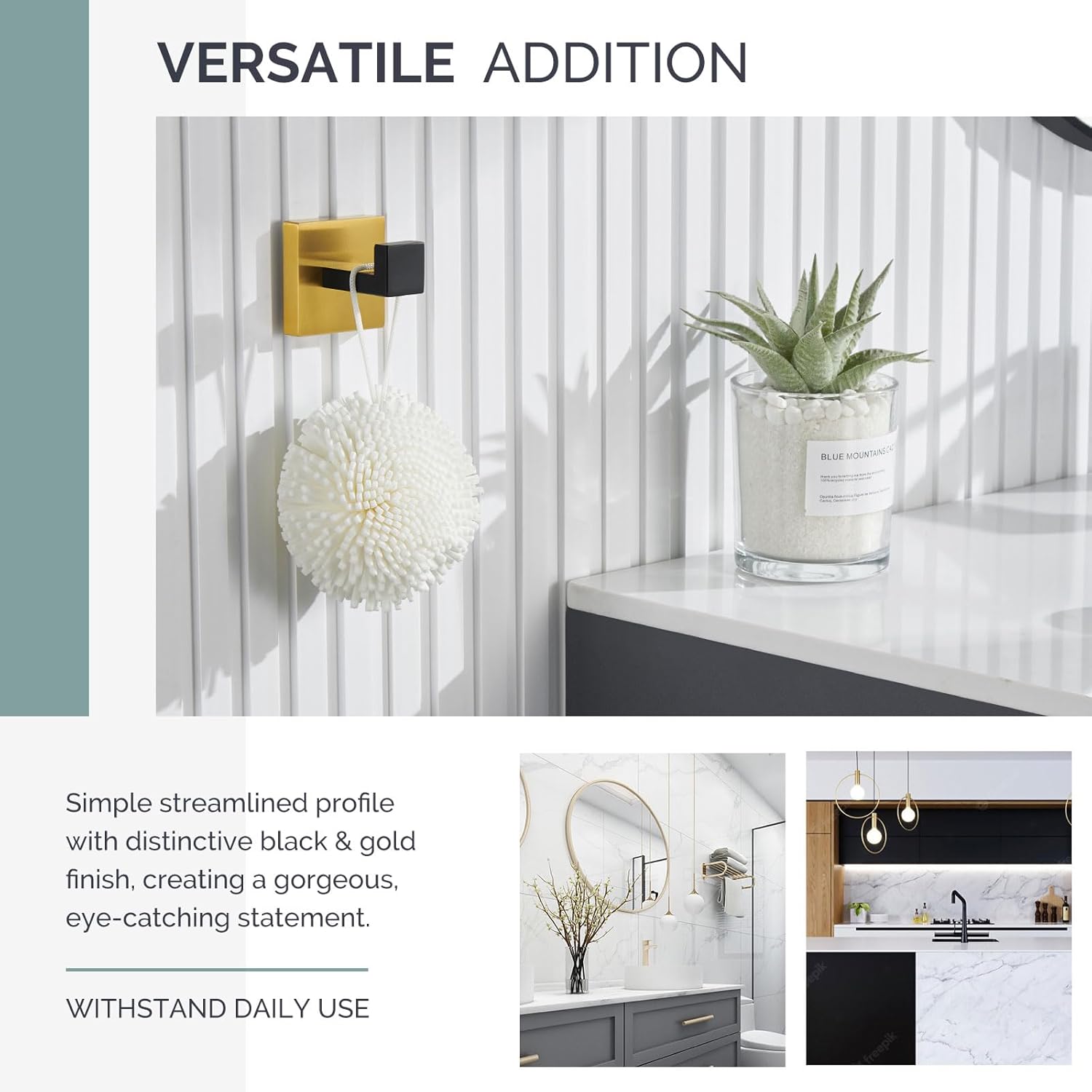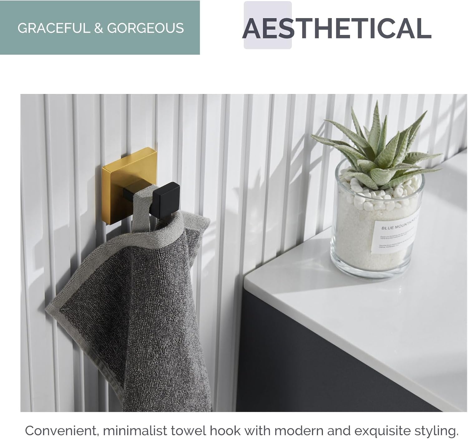 Angle Simple Towel Hook Black & Gold, 304 Stainless Steel Square Robe Bathroom Hook for Wall