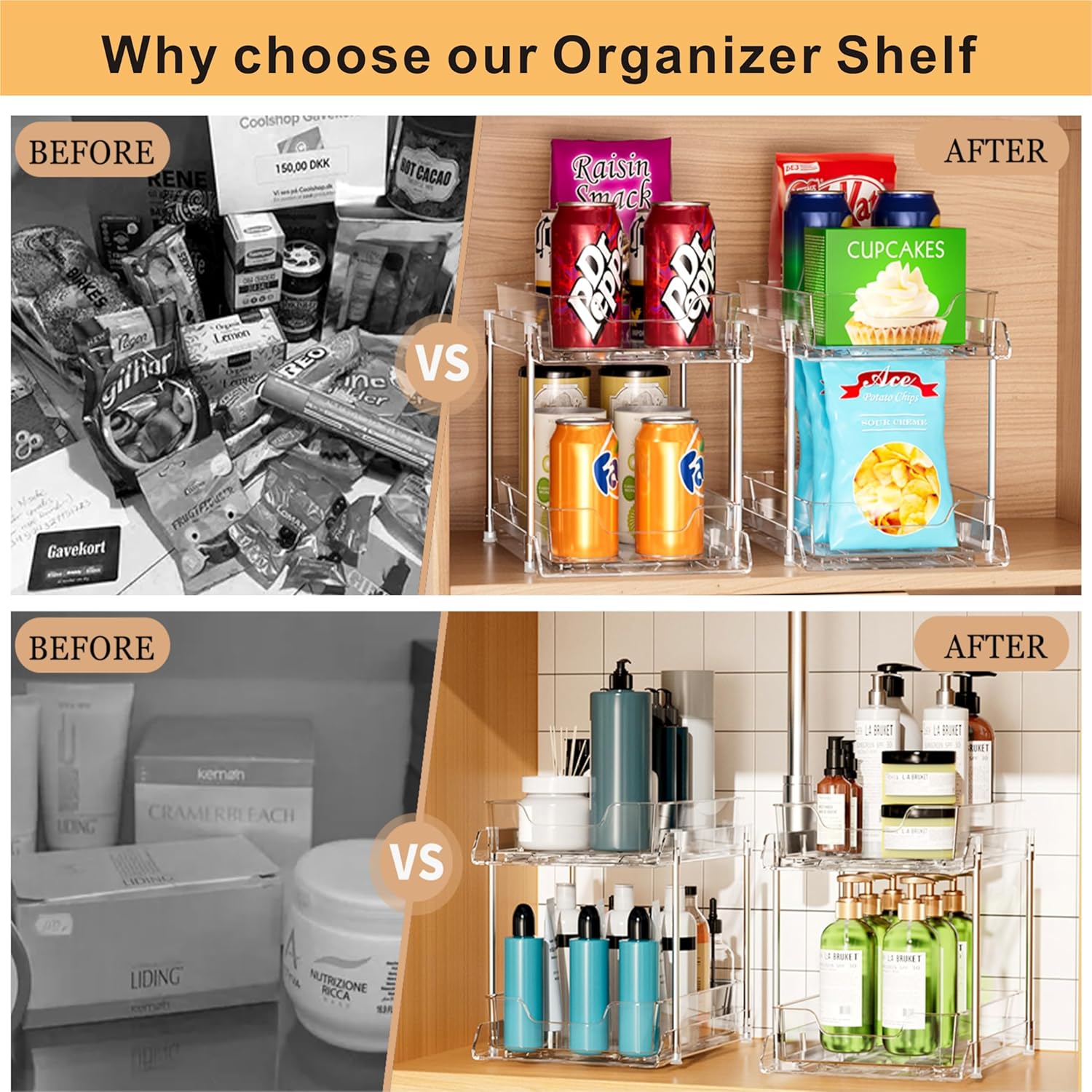 JLKDQ 4 Pack Bathroom Under Sink Organizers and Storage, 2-Tier Pull Out Medicine Cabinet Organizing- Kitchen, Pantry, Medicine Storage Bins, Vanity Makeup.(Clear,10.63" L x 8.0" W x 8.46" H).
