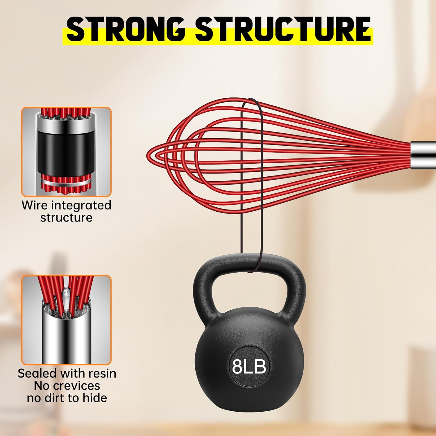 - 484ºF High Heat-Resistant: Feature BPA free silicone wires. 1.65mm thickened wires coated in 0.3mm soft silicone makes it stronger and more durable. Great for stirring sauces and gravies while heating.
