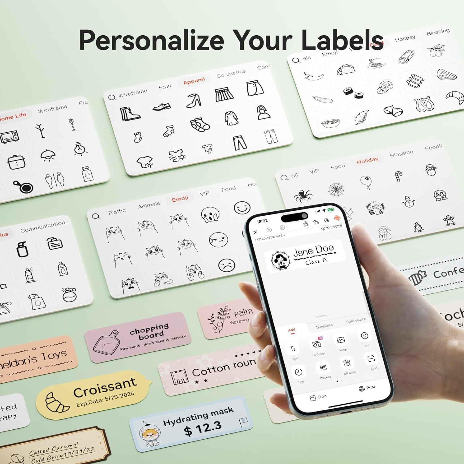- 【2024 New Version Label Maker】This household organization label maker is the 2024 new version D110 label machine, smaller but better, offering superior print clarity resulting, smooth printing effects and fast processing. Easy to use for quick home use and basic label making, which also can help labeling in school, perfect for back to school gifts.