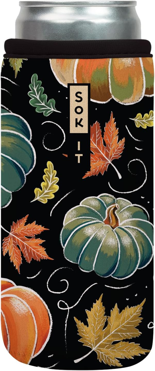 Sok It CanSok Sleeve for Beer & Soda Insulated Neoprene Cover (Midnight Harvest, 12oz Slim Can Sleeve)