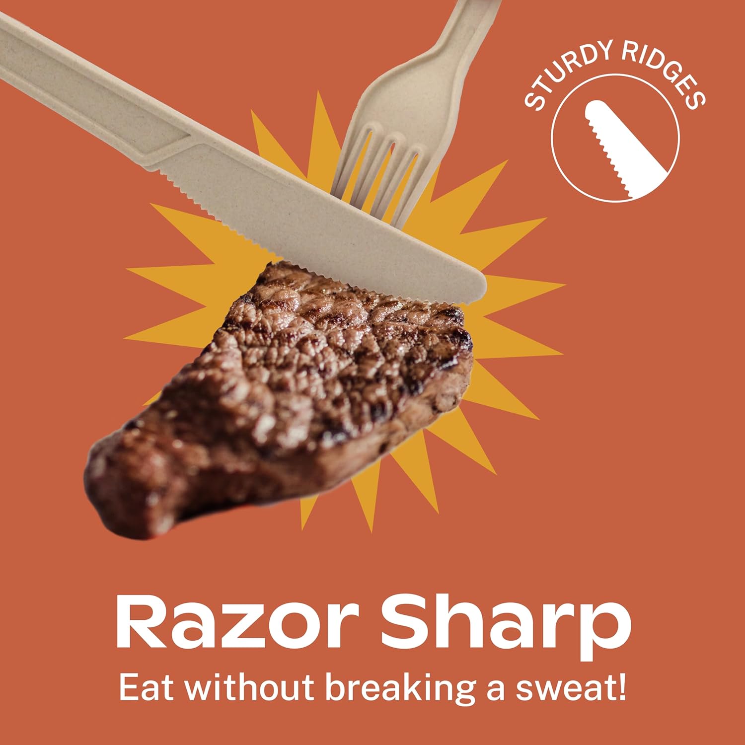 CORAL Light Brown 100% Compostable Silverware Set 340 Pieces - Heavy Duty 160 Forks, 120 Spoons, 60 Knives Bulk - Break Resistant with Smooth Edges, Ocean Friendly Alternative to Plastic Utensils