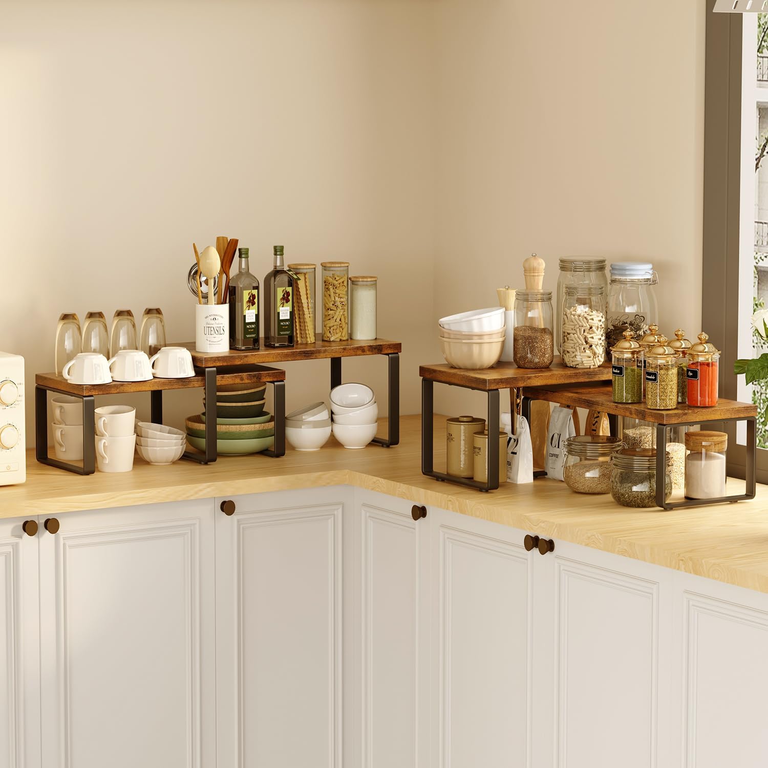 - SAVE COUNTERTOP SPACE: Keep your kitchen countertop more organized with this set of 4 cabinet organizer, keep your cooking essentials such as spice jars, containers, and utensils neat and beautiful, good use of the small countertop space