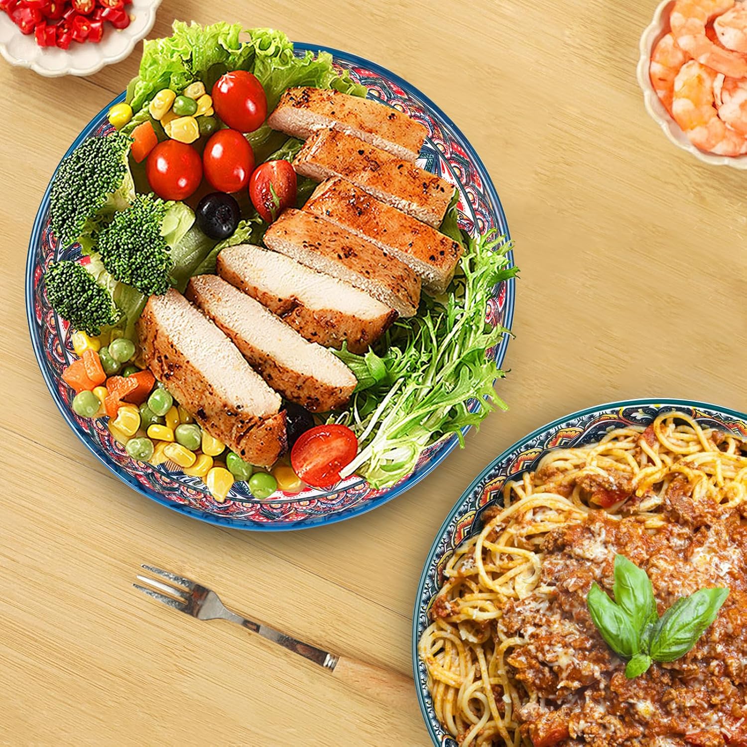 - Easy Maintenance and Cleaning: Fired at high temperatures to maximize the strength of the porcelain, The Ultra-durable glaze is sufficient to resist the scratches of the knives and forks at 1000 grams of pressure, won't absorb stains, ensuring that they look great and maintain their bright colors over time,The smooth glaze on the plates makes them easy to clean, either by hand or in a dishwasher.
