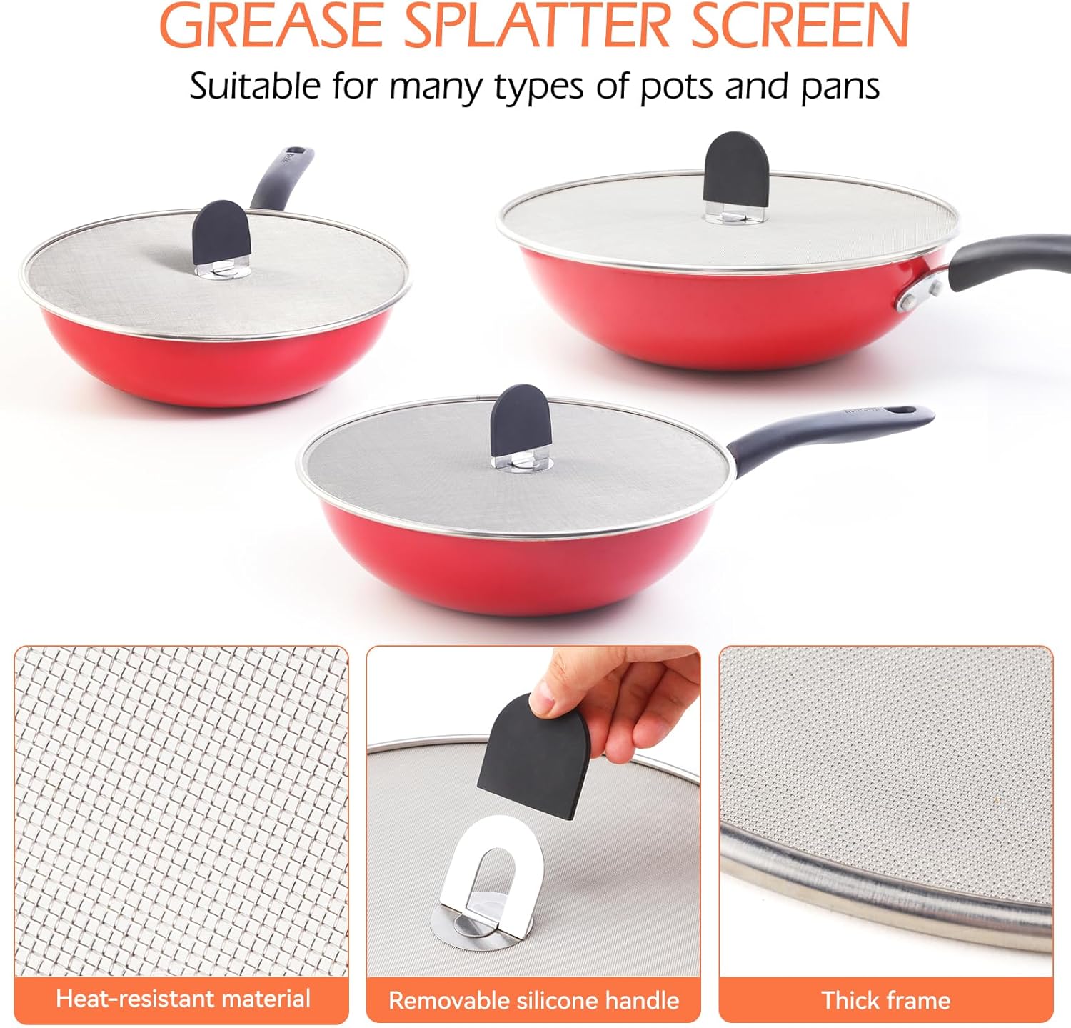 - [Quality made] - Made fine mesh and high-quality stainless steel of grease screens for fry pans and ensure your safety while cooking with this grease splatter guard for frying pan, minimizing the risk caused by oil splashes