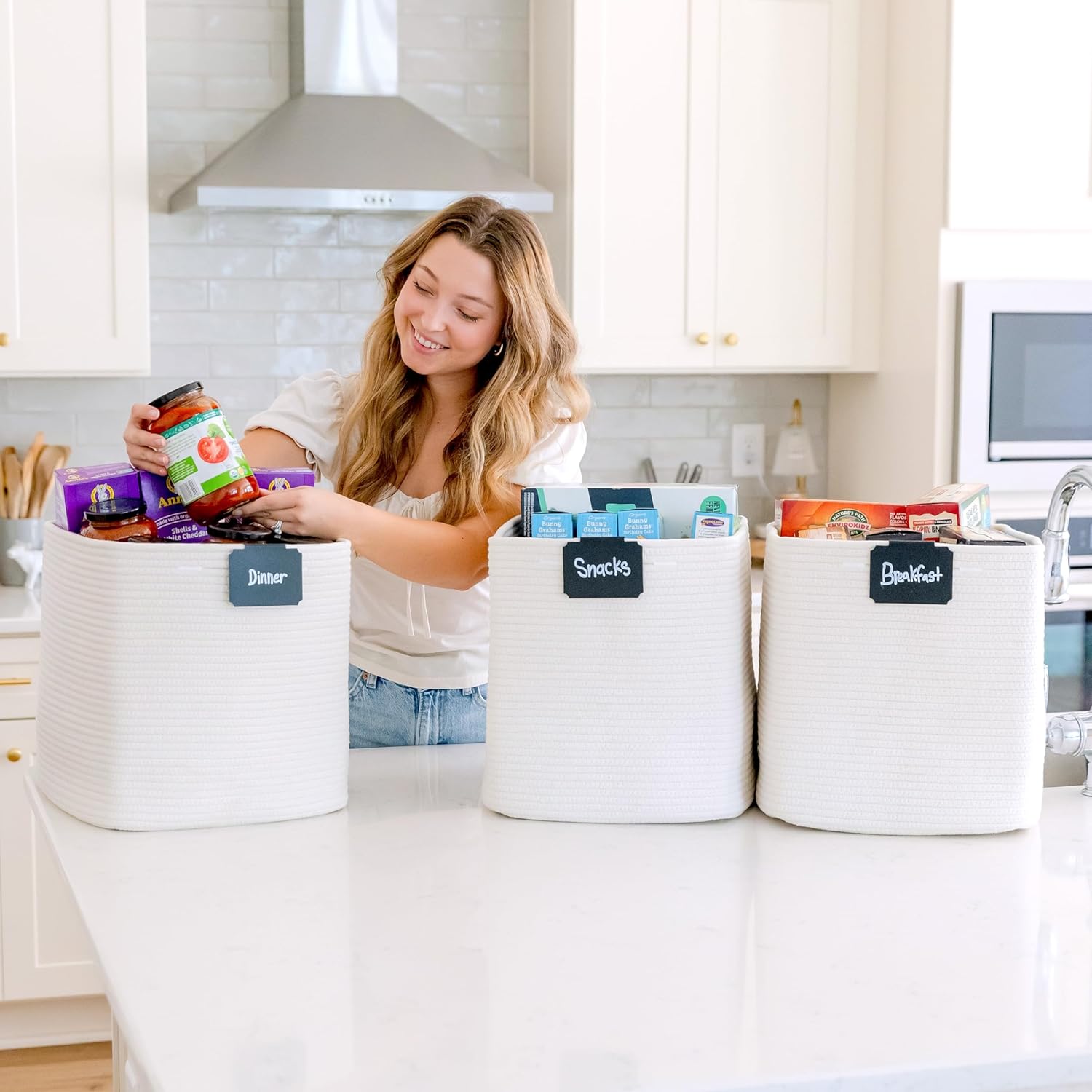 NaturalCozy 13x15x13 Kallax Storage Cubes, 3 Pack | Cotton Rope Cube Storage Bins Woven Baskets for Organizing | Kallax Insert Baskets for Shelves Organizer, Kids Toy, Pantry, Closet, Baby Nursery