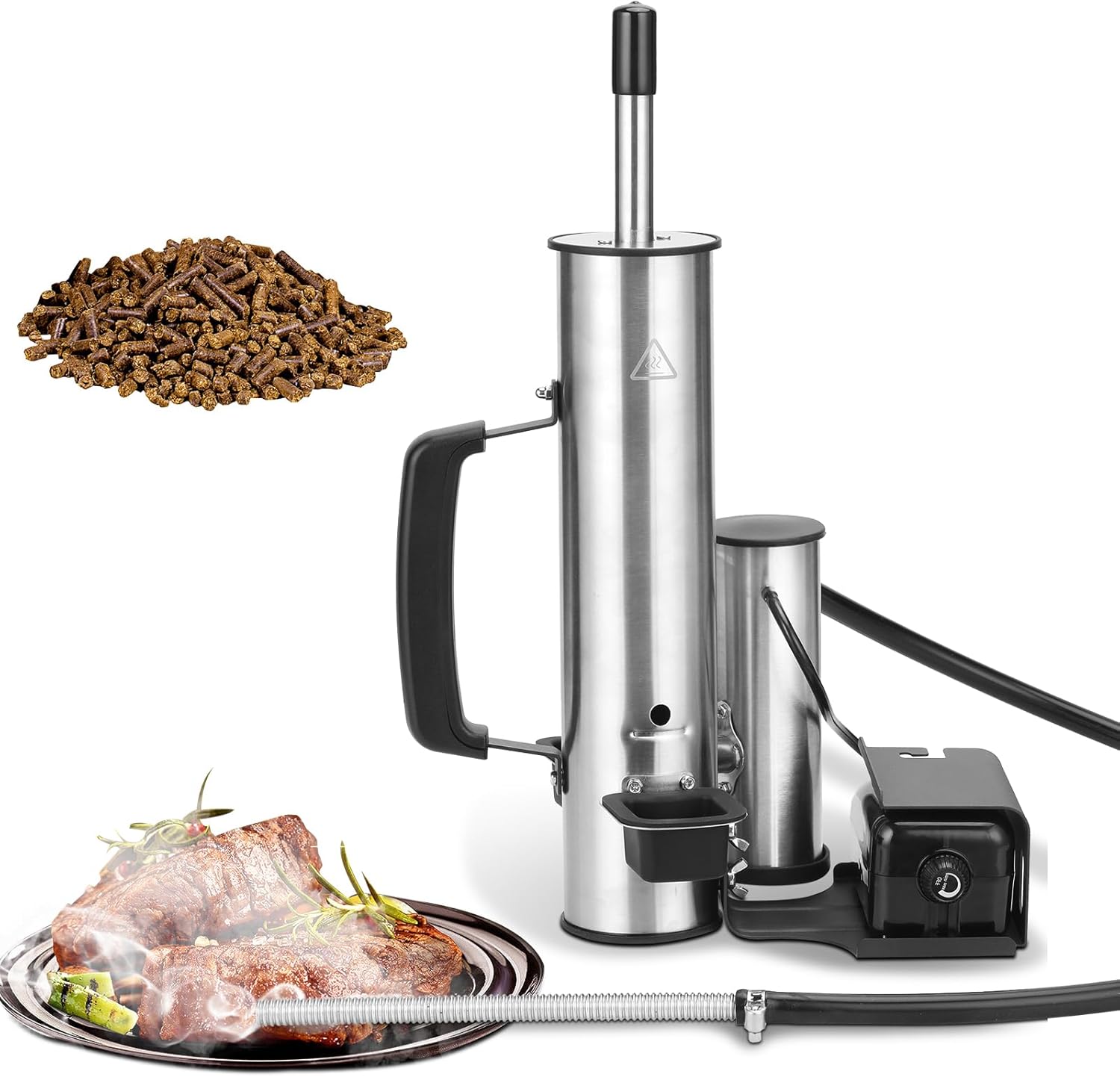 - Nice Portable Mini Smoke Generator - This stainless steel mini electric smoke generator, it's practical and doesn't take up much space, equivalent to having a small pellet smoker, you don’t need to buy a big bulky smoker. Add your favorite blend of wood chunks or chips to customize smoke profile, such as cherry, hickory, mesquite, apple, pecan to add different tastes.