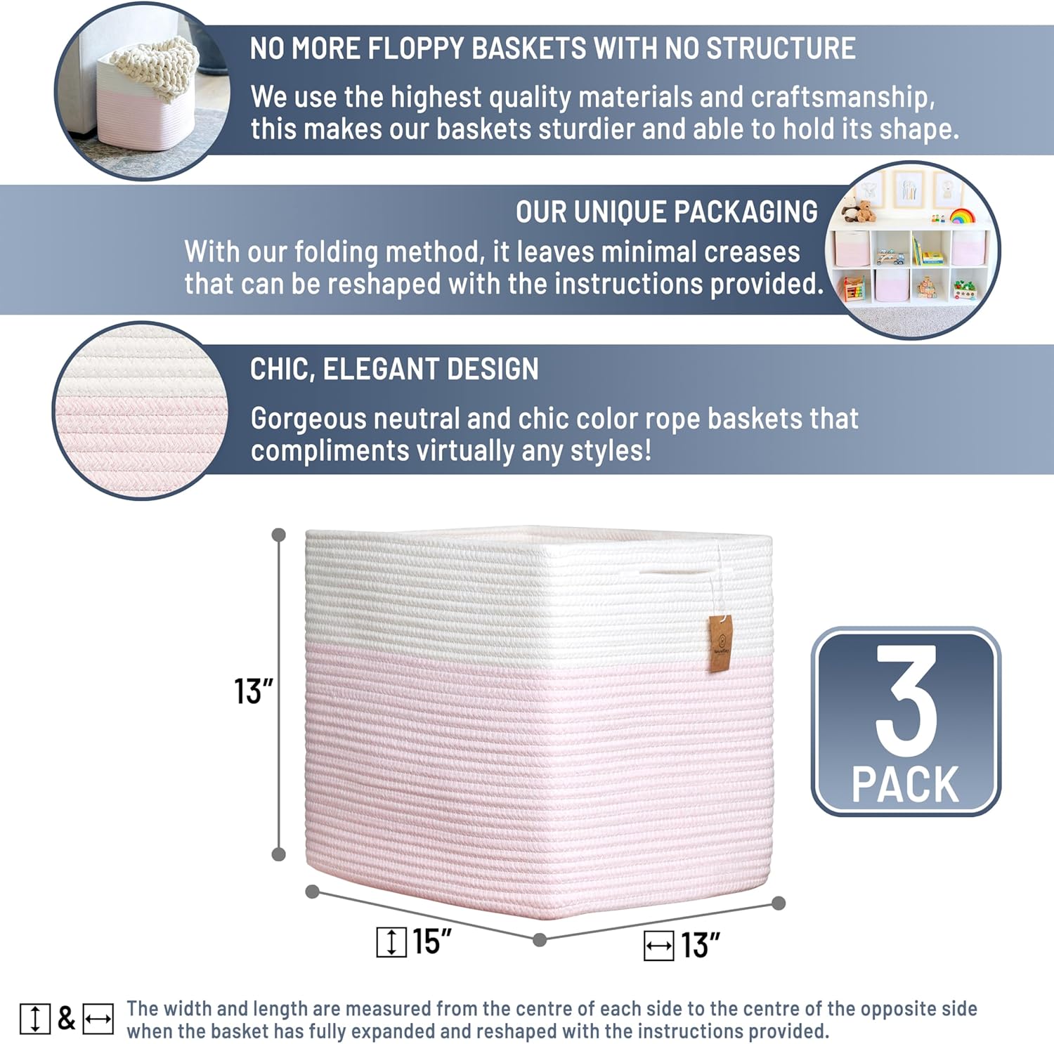 - No More Wrinkly Floppy Woven Baskets: Prepare to have your socks knocked off (and then neatly organized), when you take a peek at our woven rope basket set. No more ‘permanently’ creased up, floppy storage basket here. Thanks to our unique folding method and quality rope, shaping is easy with the instructions provided!