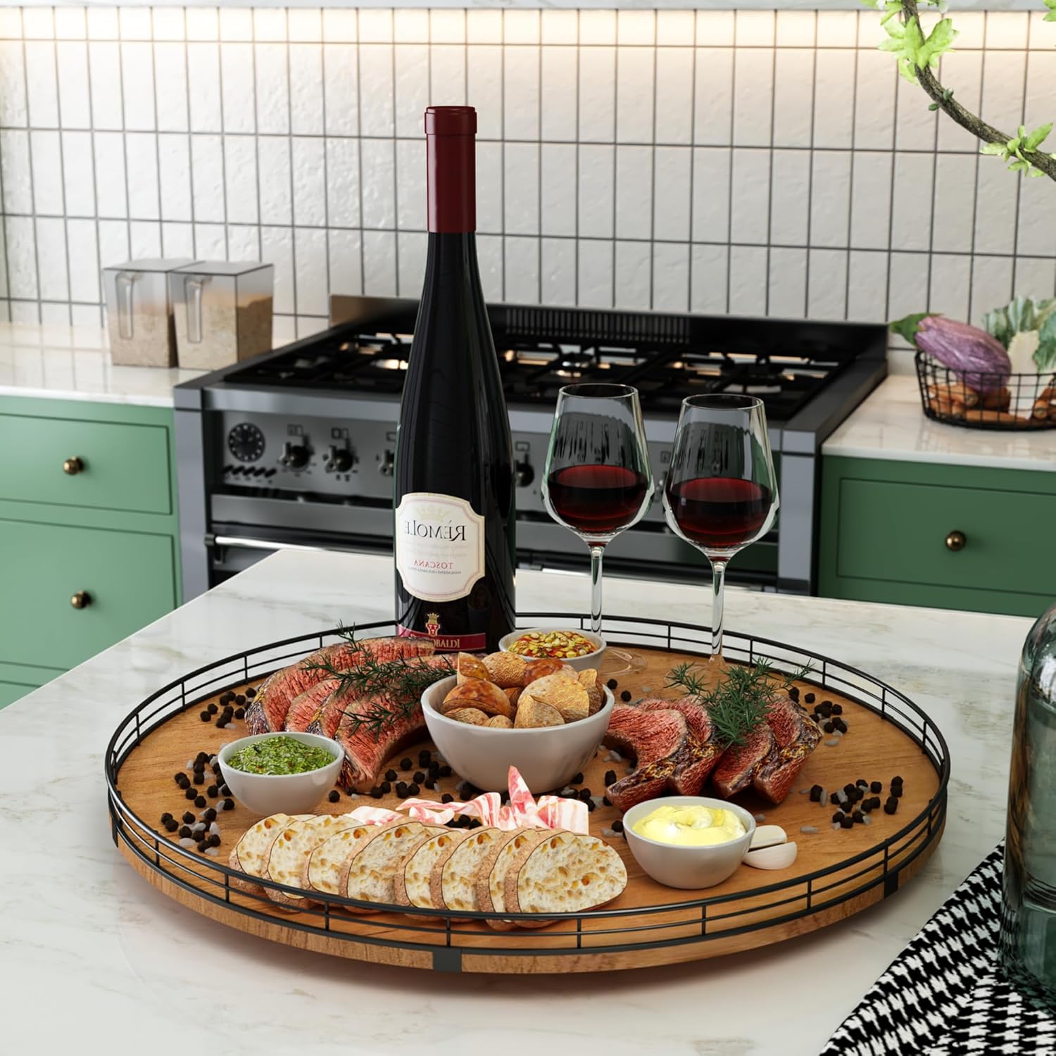 - ππππππ ππππππ:The base is large enough to hold a lot and heavy objects and successfully rotate. It is made of lovely oak wood that is strong with a sturdy metal rack to secure the items on the turntable. The turntable smoothly revolves all around making the items an easy reach. There is also included anti-slip pads on the bottom of the Lazy Susan, for extra surface protection.