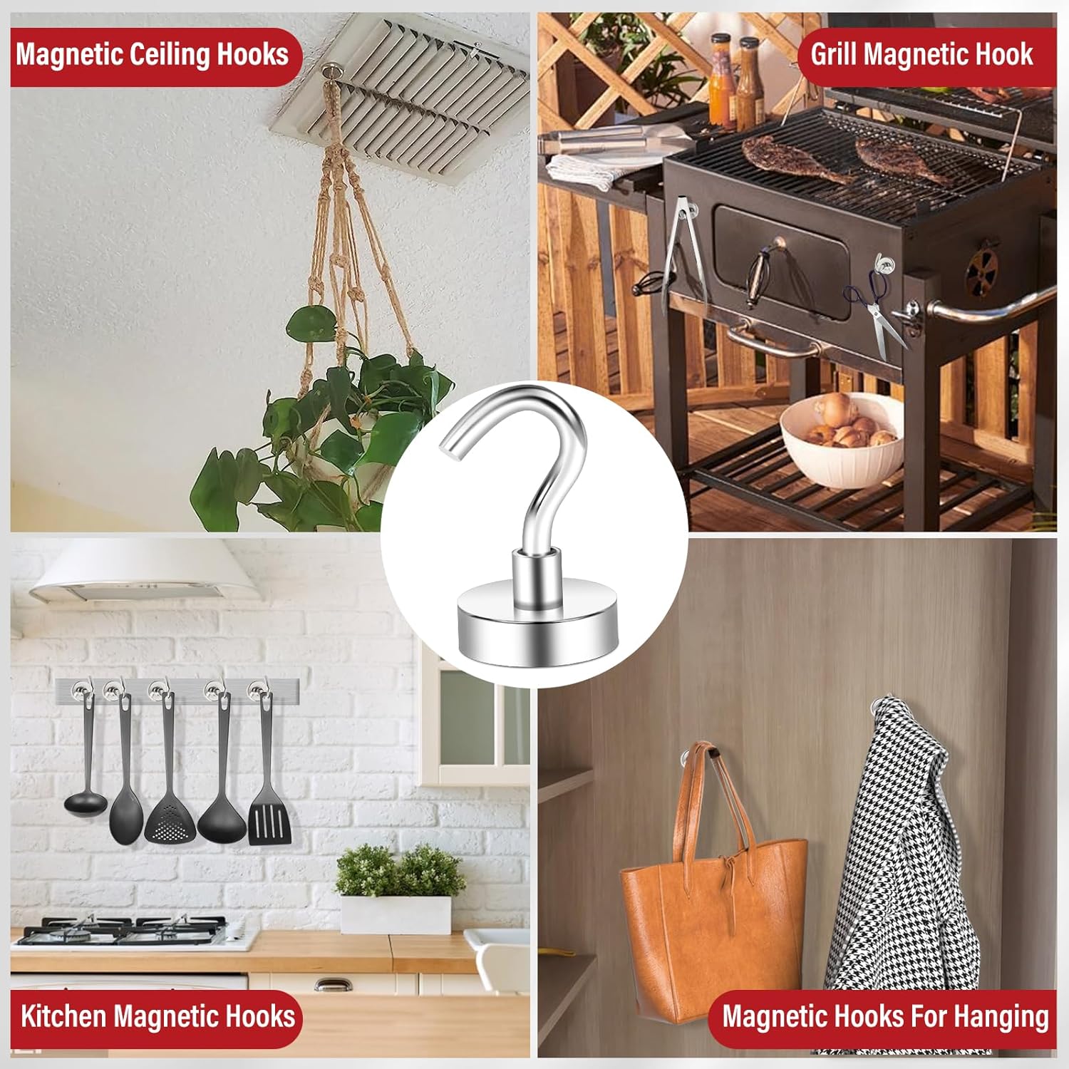 - 【HIGH QUALITY】The material of the magnetic hooks heavy duty is neodymium magnet and A3 high quality steel, which has excellent magnetic ability. The magnet hooks adopts a Ni-Cu-Ni three-layer coating, providing protection for the magnetic hooks.