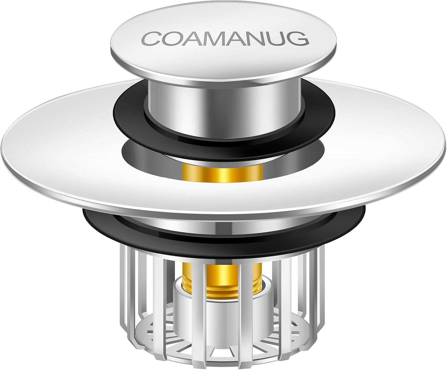 - ·Versatile Stopper with Strainer: The COAMANUG Upgraded Pop-Up Tub Stopper with hair trap can stop drainage to fill the tub or be popped up for draining, while effectively capturing hair and debris to prevent drain clogs. A COAMANUG Pop-Up Stopper with a built-in shower drain hair catcher resolves tub drainage issues.