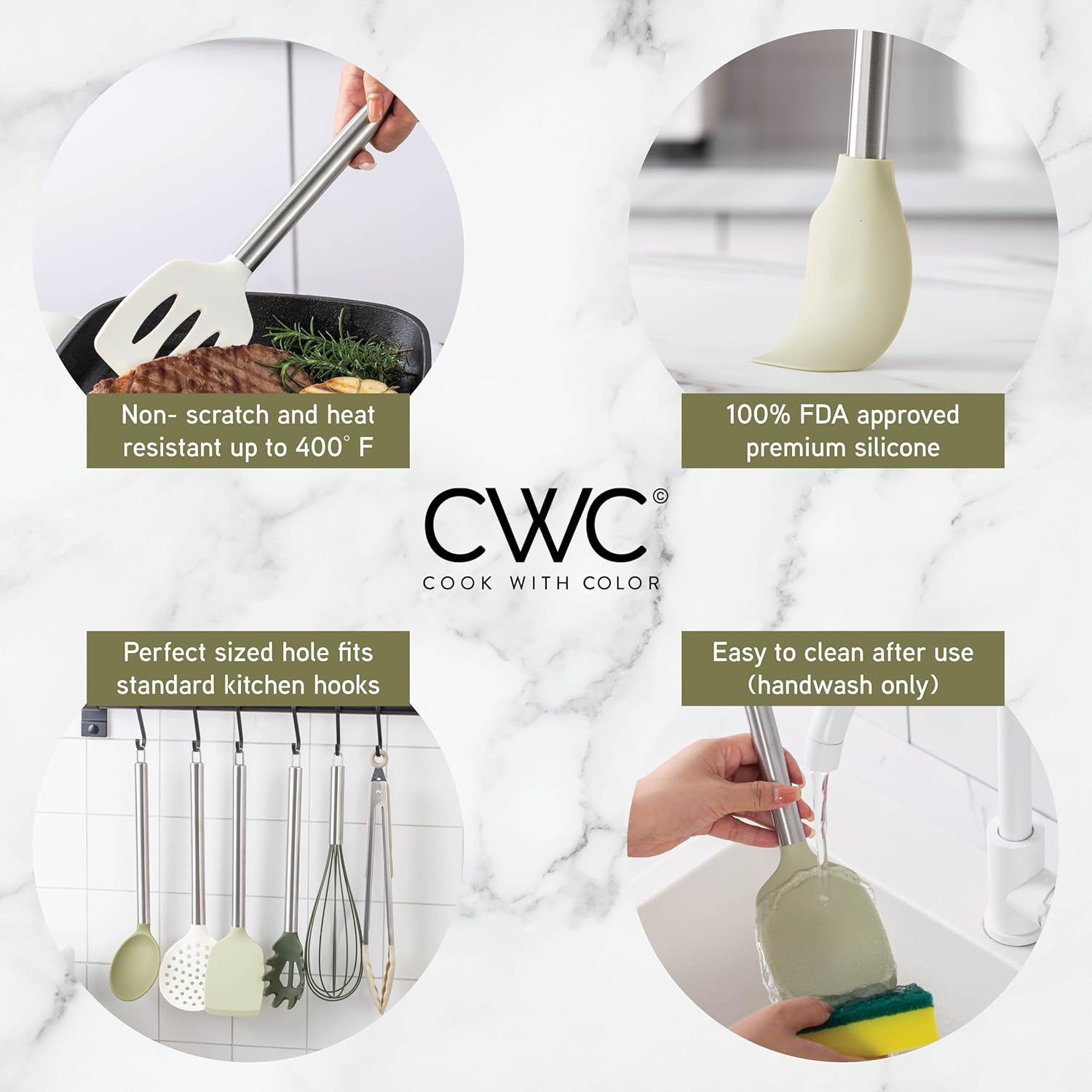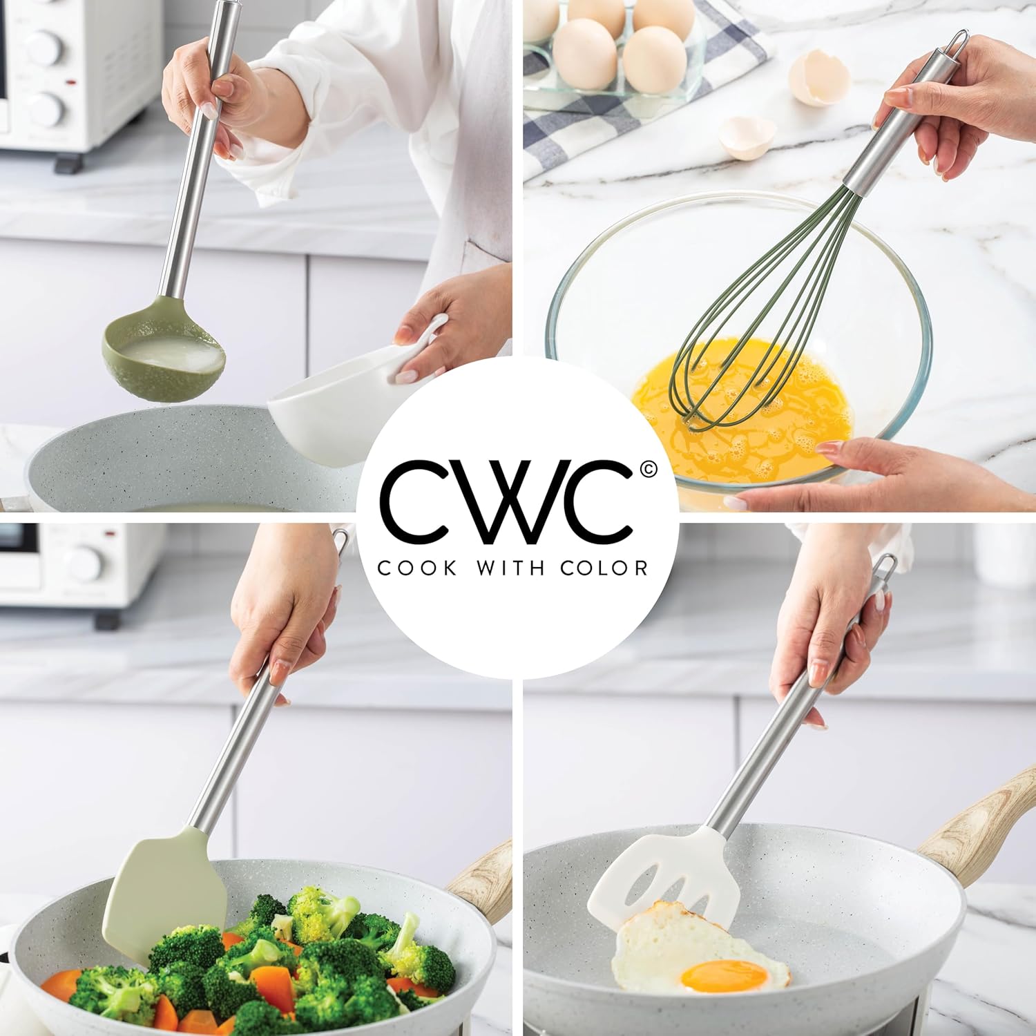 - Cook with Color will give you all the reasons to LOVE your kitchen utensils! Cook, bake and serve with this fashionable cooking tool set that is sturdy and easy to clean! Kitchen beauties that won't disappoint!