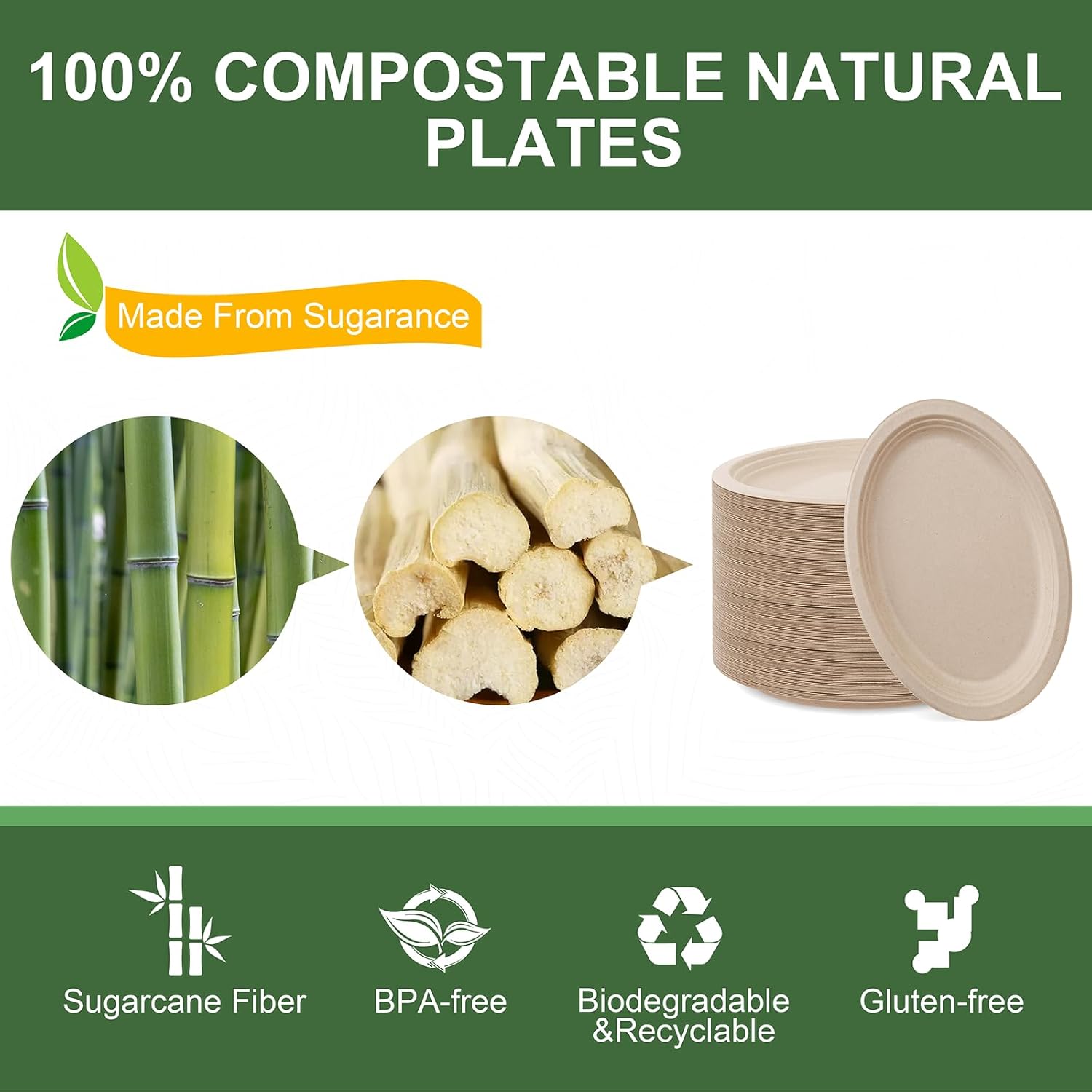 - 【Versatile & Easy to Use】Whether you're hosting a picnic, party or any other event, these biodegradable paper plates are suitable for any hot or cold dish. Disposable paper plates are a great way to ensure quick and easy cleanup, you just throw them away after using and save time by not having to clean. Allowing you to focus on your day and have more time with family and friends making unforgettable memories.