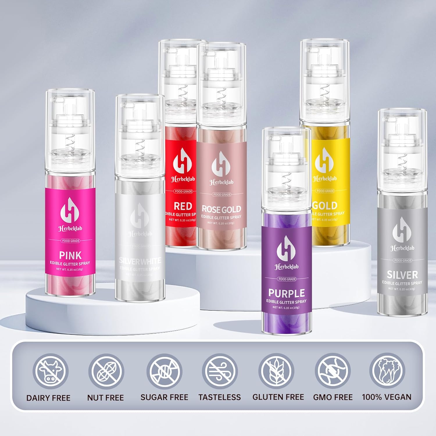 - Quality Assurance: Herbeklab provides high-quality silver food coloring designed to meet your culinary and presentation needs. If you meet any problem of the edible glitter spray, please contact us through Amazon buyer messages, we will provide professional service.