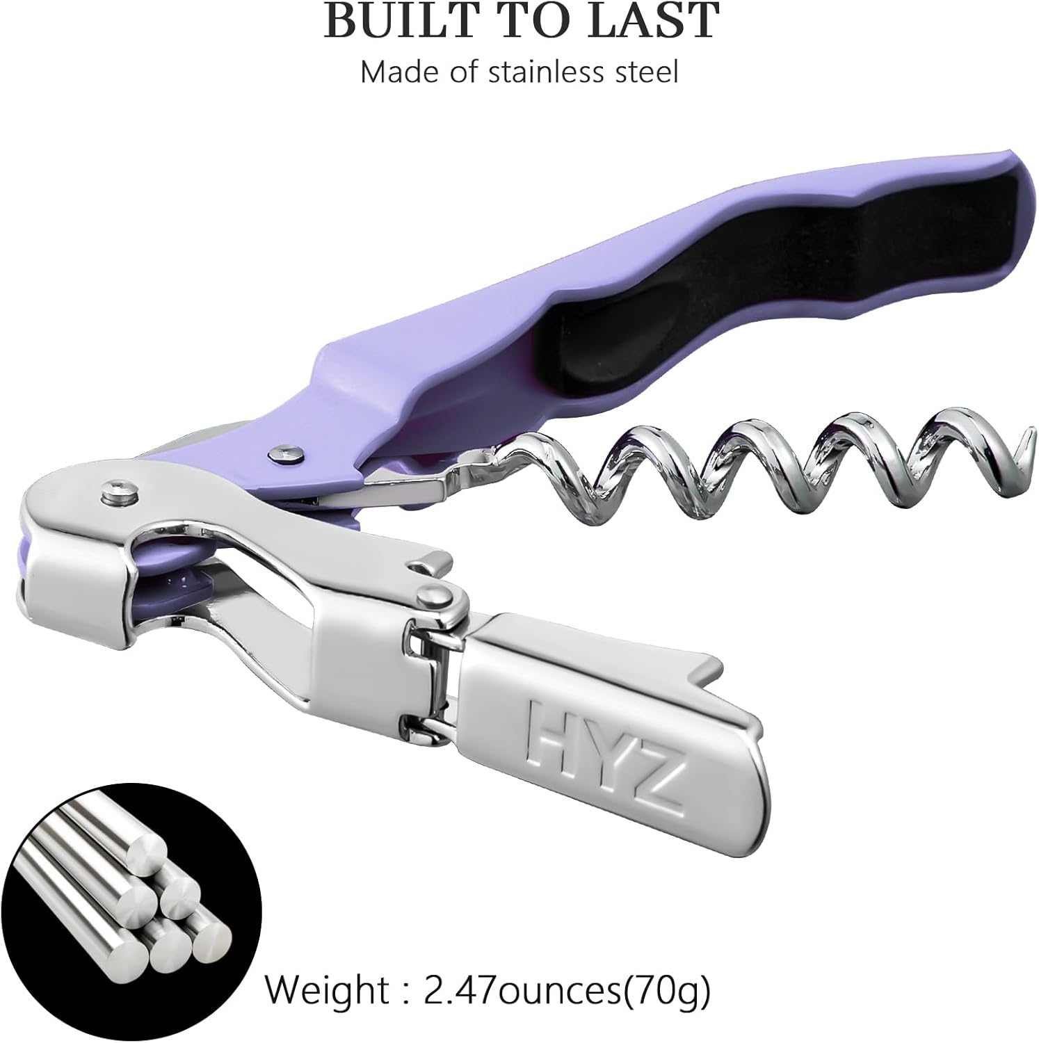 HYZ 2-Pack Wine Opener Waiter Corkscrew, Professional Wine Key for Servers, Bartender with Foil Cutter, Manual Wine Bottle Opener Double Hinged (Lavender)
