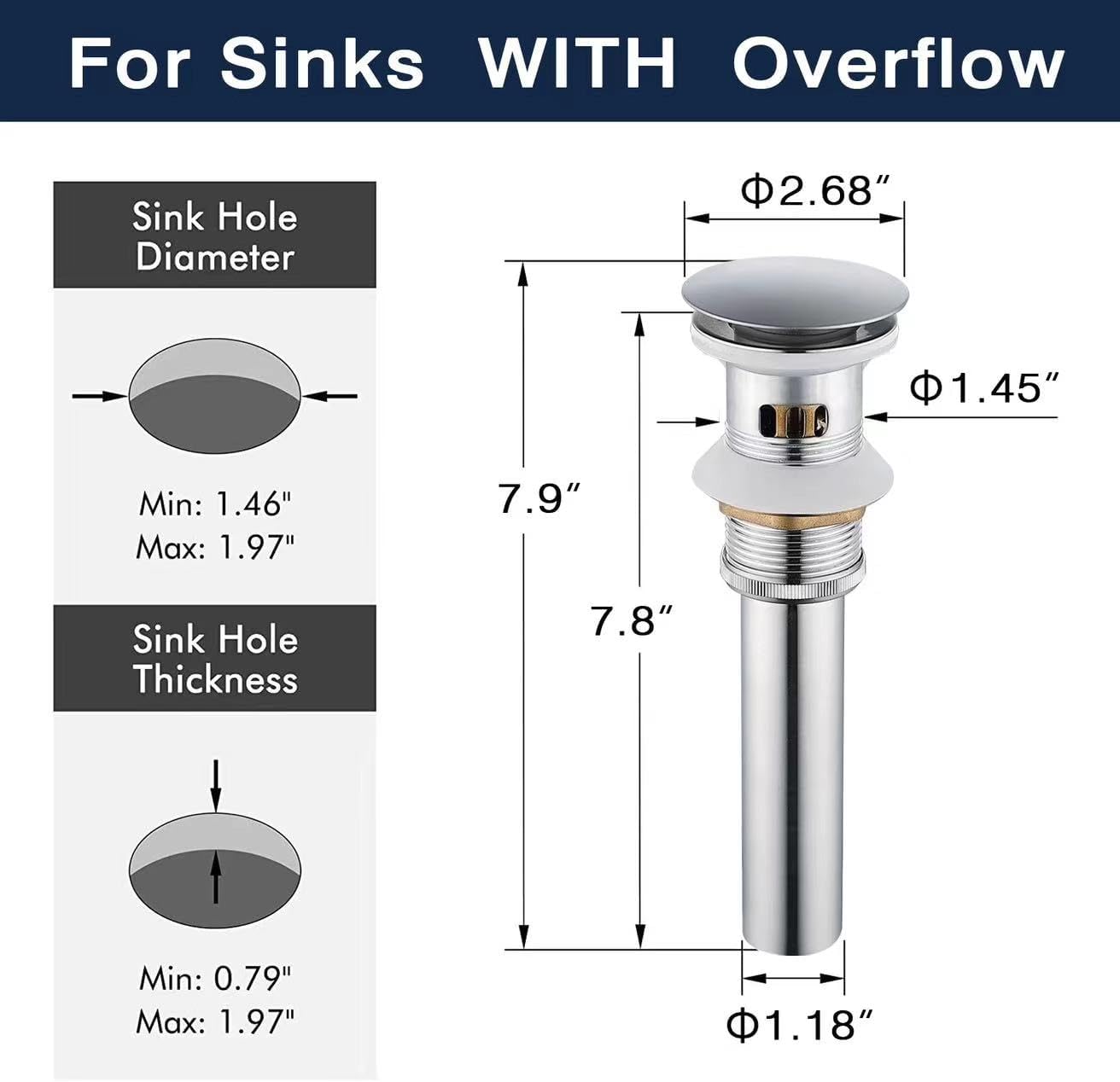 - Effectively blocks foreign objects and hair from falling into the sewer with the pop up drain for bathroom sink, preventing clogs and costly plumbing issues.