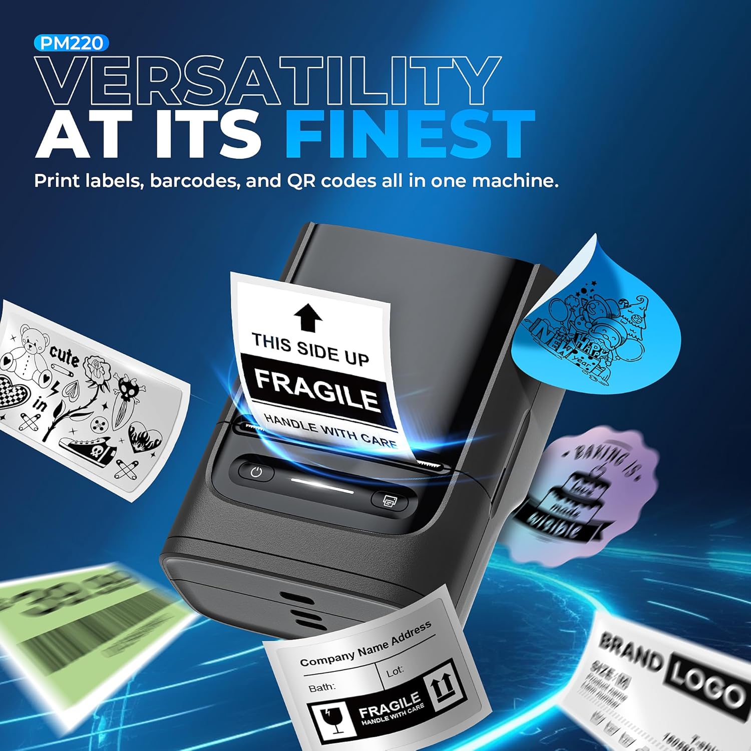 Nelko Label Maker Machine with Tape, PM220 Bluetooth Label Printer, Portable Thermal Printer for Small Business, Address, Logo, Clothing, Mailing, Sticker Printer for Phones & PC, 1 Count, Black