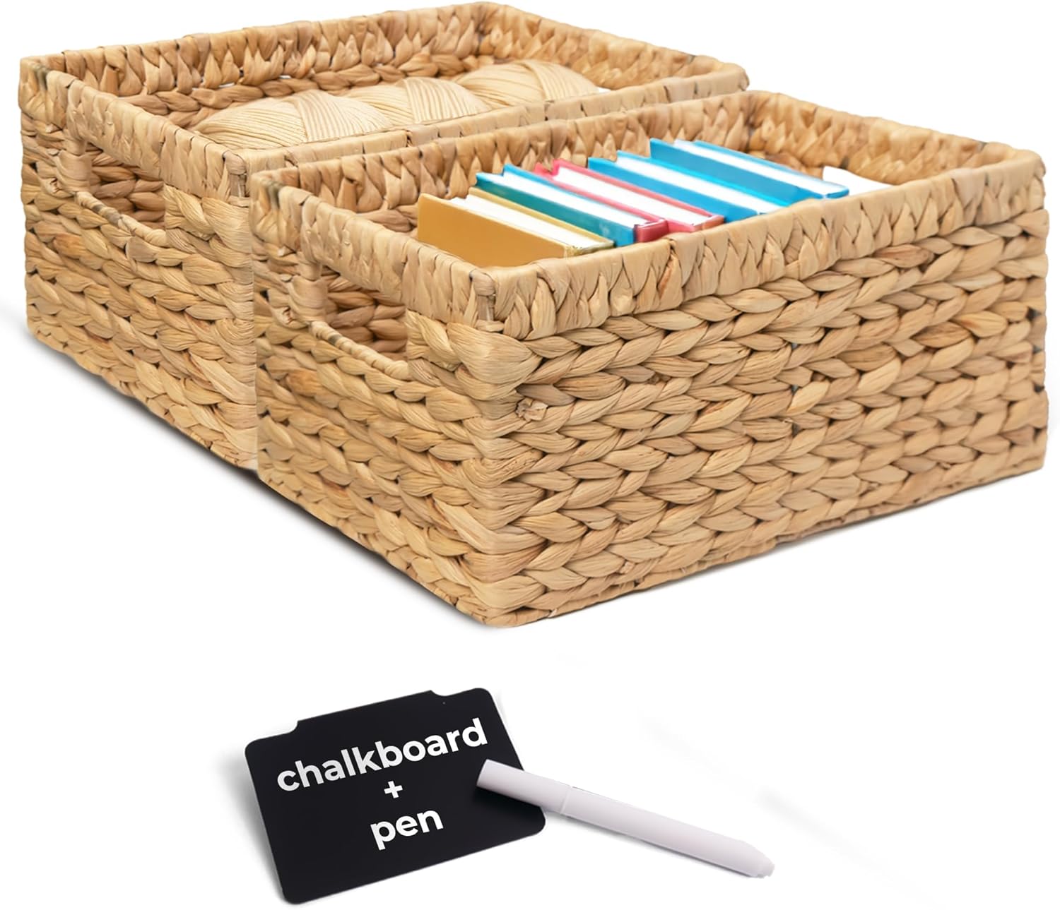 - 🌿[ Pack of 2 Pcs] Designed to fit comfortably on shelves, or for room organizing. Hyacinth wicker storage baskets include two medium-sized woven storage bins (13.0 x 8.25 x 7.0 in). And may vary within 1/4 in due to handwoven.