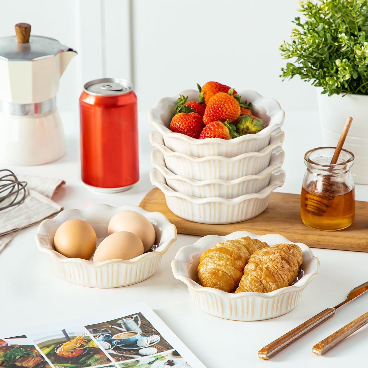 vancasso Mini Pie Pans Set of 6, 5.2 Inch Ceramic Deep Dish Pie Plates with Ruffled Edge for Baking, Microwave & Oven Safe, White