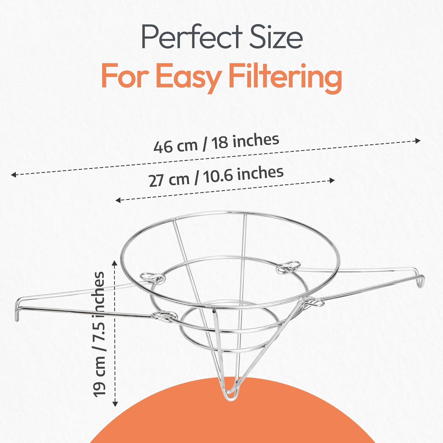 - PREMIUM QUALITY STAINLESS STEEL - Crafted from high-quality stainless steel, our filter cone holder is built to last. The sturdy, rust-resistant construction ensures stability during use, providing a reliable tool for all your deep fryer oil filtering needs and maple syrup applications.