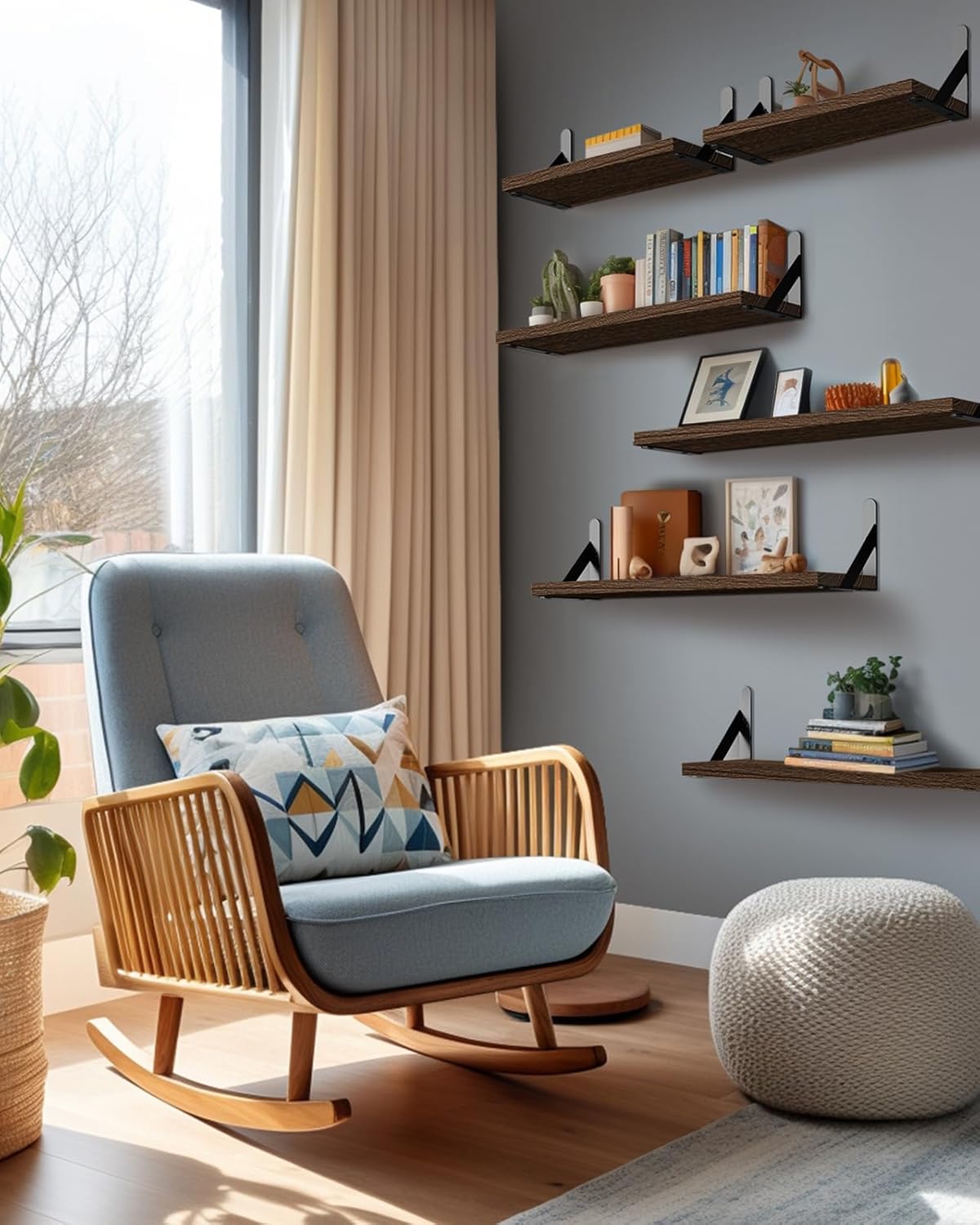 - Flexible Arrangement: Use all the shelves together in one room or in different places around the house. The larger shelves suit spaces like living rooms, while the smaller ones fit well in bedrooms and bathrooms.