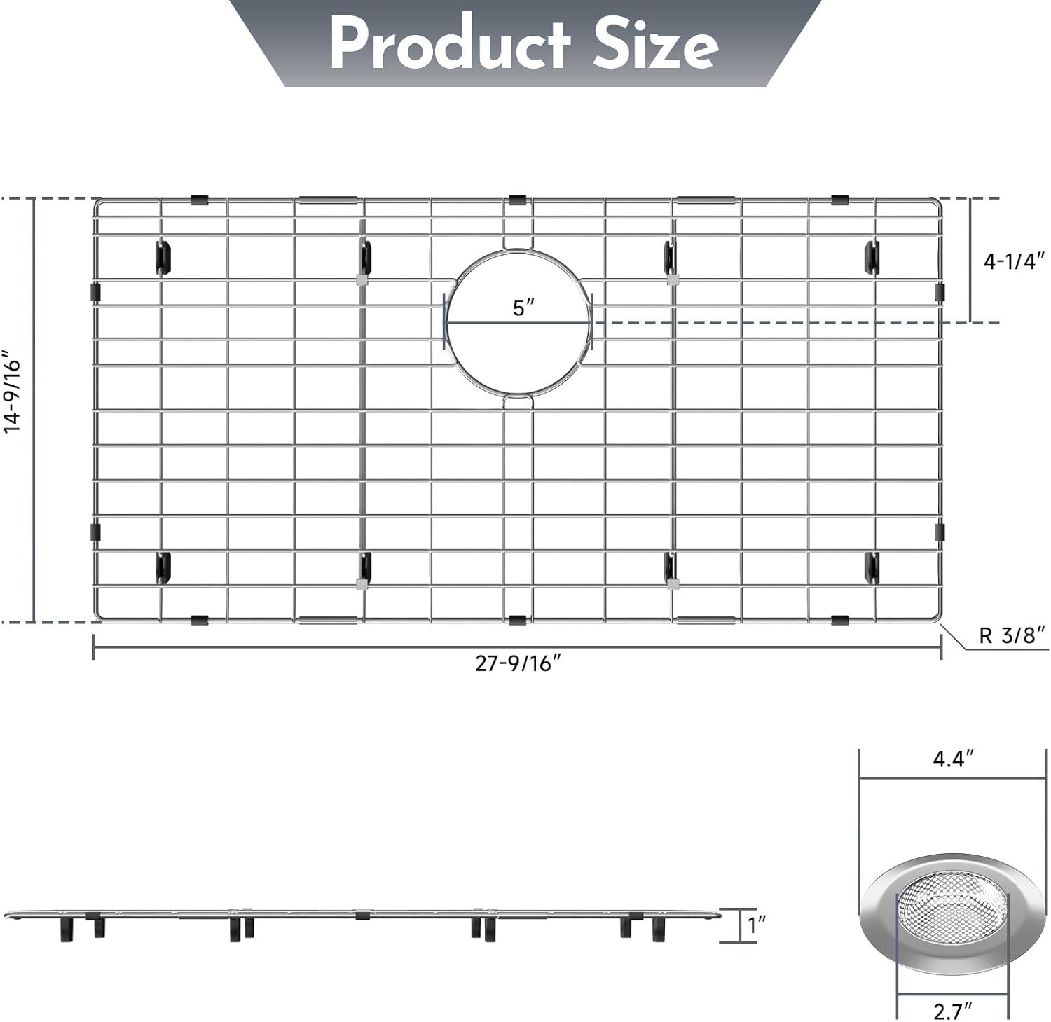 - Product Size: 27-9/16 "x 14-9/16". Measure 1" from the bottom of the sink". The length and width should be smaller 1/2” than the size of the sink