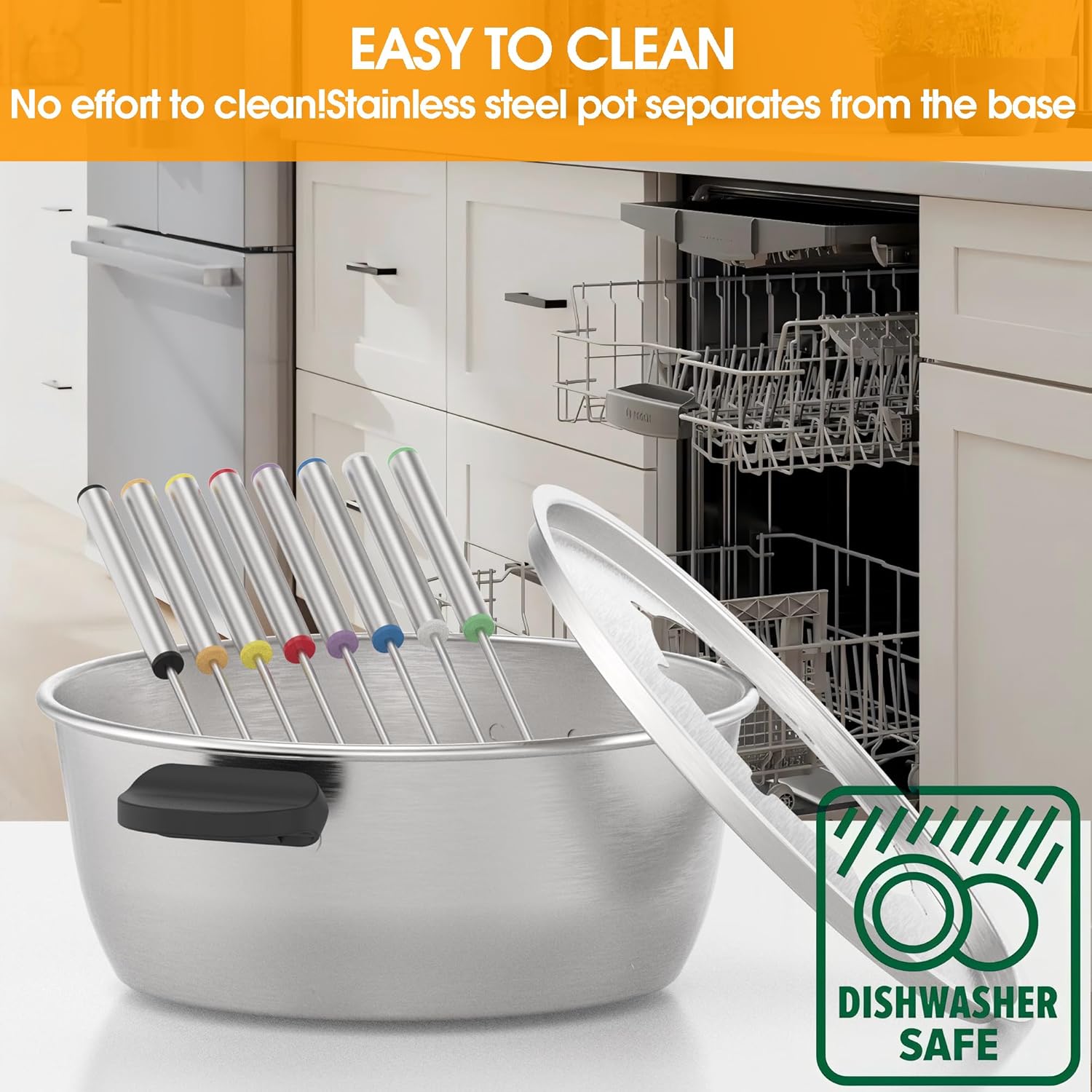 - DETACHABLE STAINLESS STEEL POT & EASY TO CLEAN - The pot is made of top rated stainless steel.Separates from the stainless base allows easy cooking and cleanup. Both the pot and base are equipped with heatproof handles for safe and easily handling while moving.