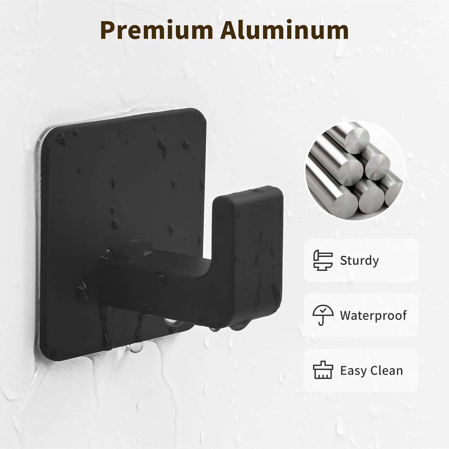 - Material: This self adhesive hook is made of high-quality aluminum alloy, ensuring long-lasting use; It is sturdy and durable, waterproof and rust proof, making it suitable for humid or dry environments