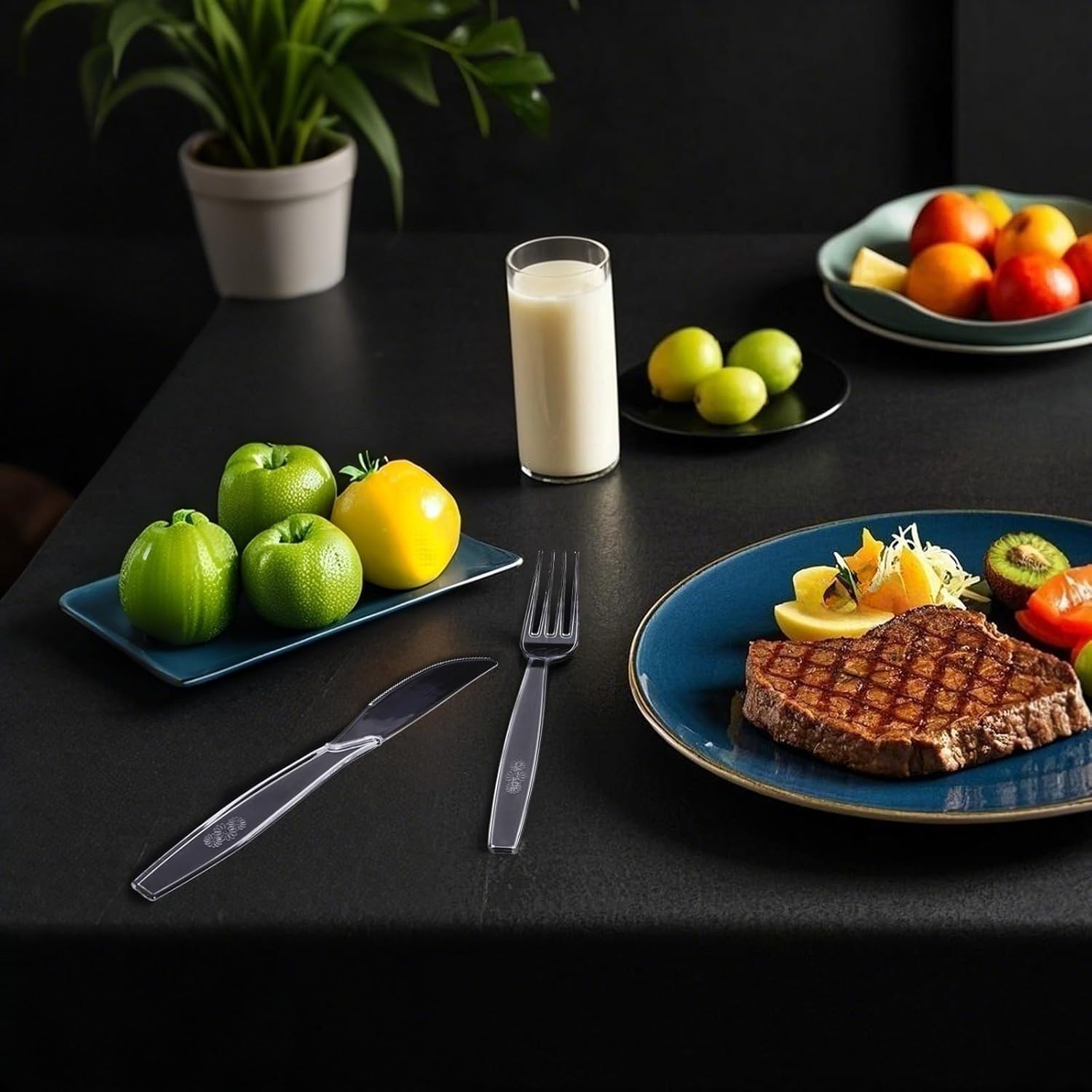 - 【Great Heat Resistant】These disposable plastic silverware set can withstand a high temperature, ideal for hot and cold food. So you can safely use them for hot foods such as soup, steak, or hot noodles, and they won't bend, deform, or melt.